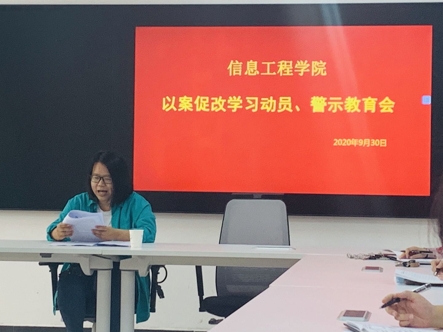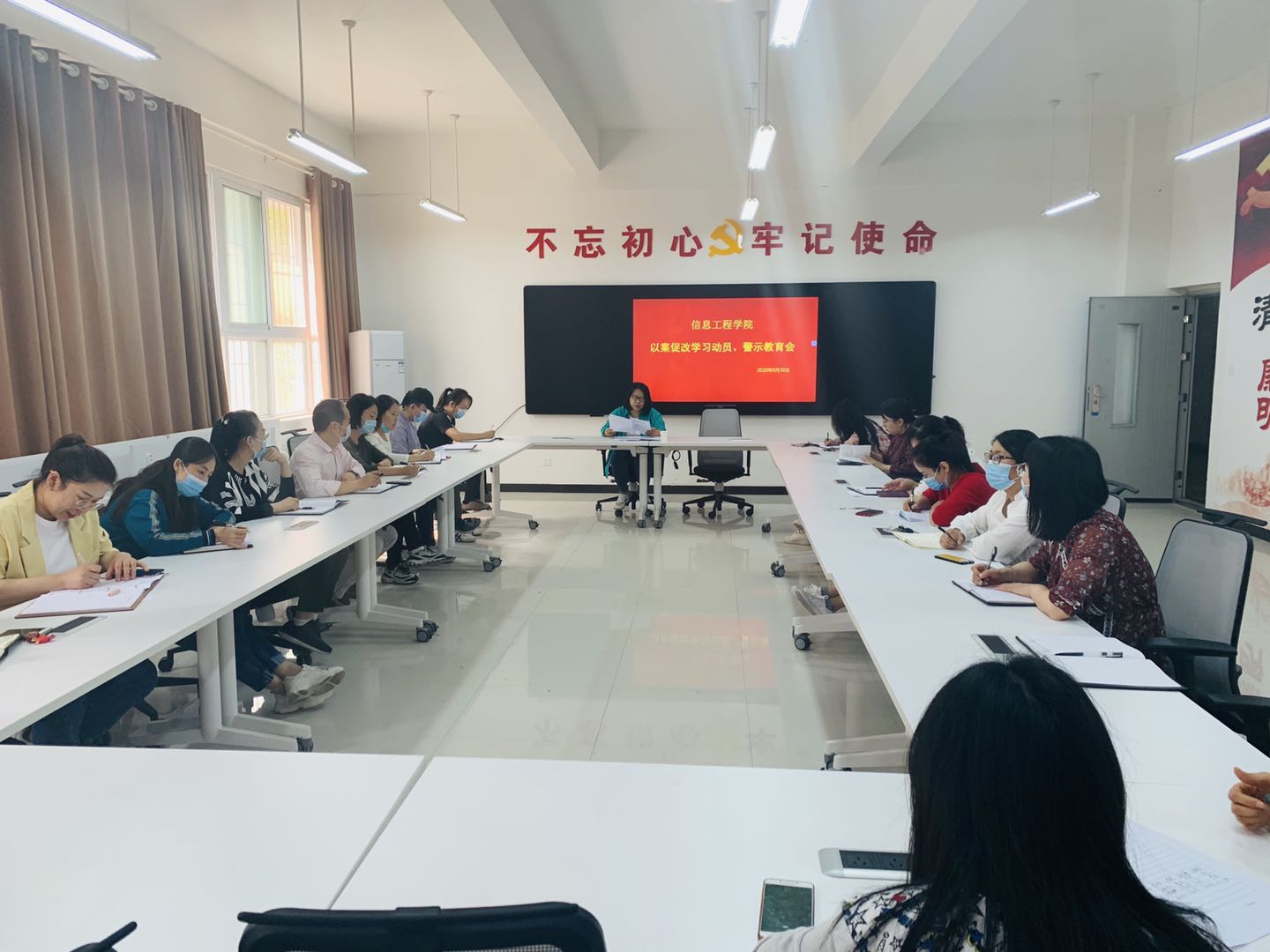 9月30日下午13:20,我院在4A教学楼一楼会议室召开以案促改学习动员、警示教育会。我院全体党员参加会议。会议由副院长杨慧丽主持。