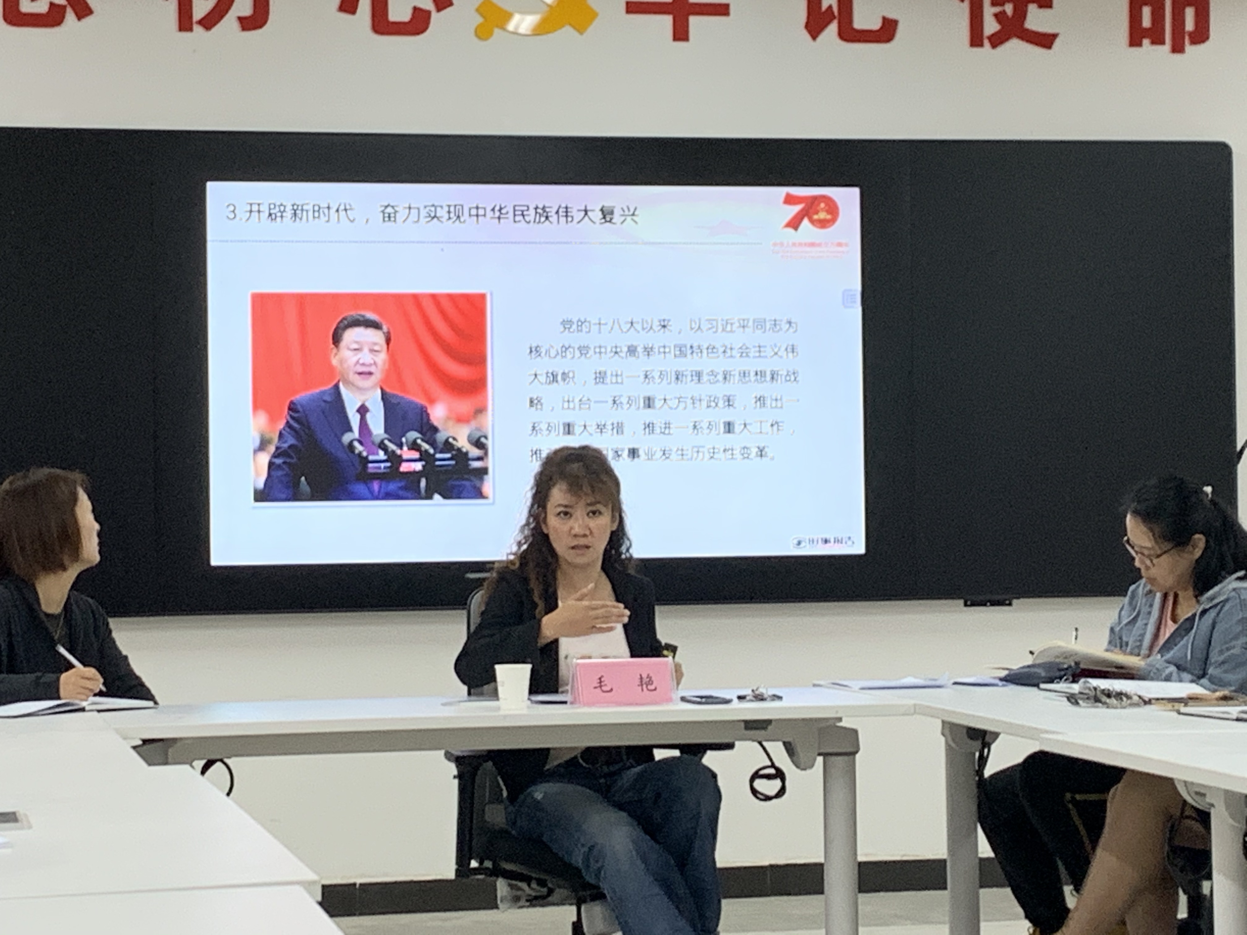 为庆祝中华人民共和国成立70周年,深入学习贯彻习近平新时代中国特色社会主义思想和党的十九大精神,进一步推进“不忘初心、牢记使命”主题教育有效开展,2019年10月9号下午14时,我系在4A教学楼一楼会议室119开展“壮丽70年 奋斗新时代”主题党课活动,我院党委委员、纪委书记毛艳为我系全体教职工上了一堂生动的党课。