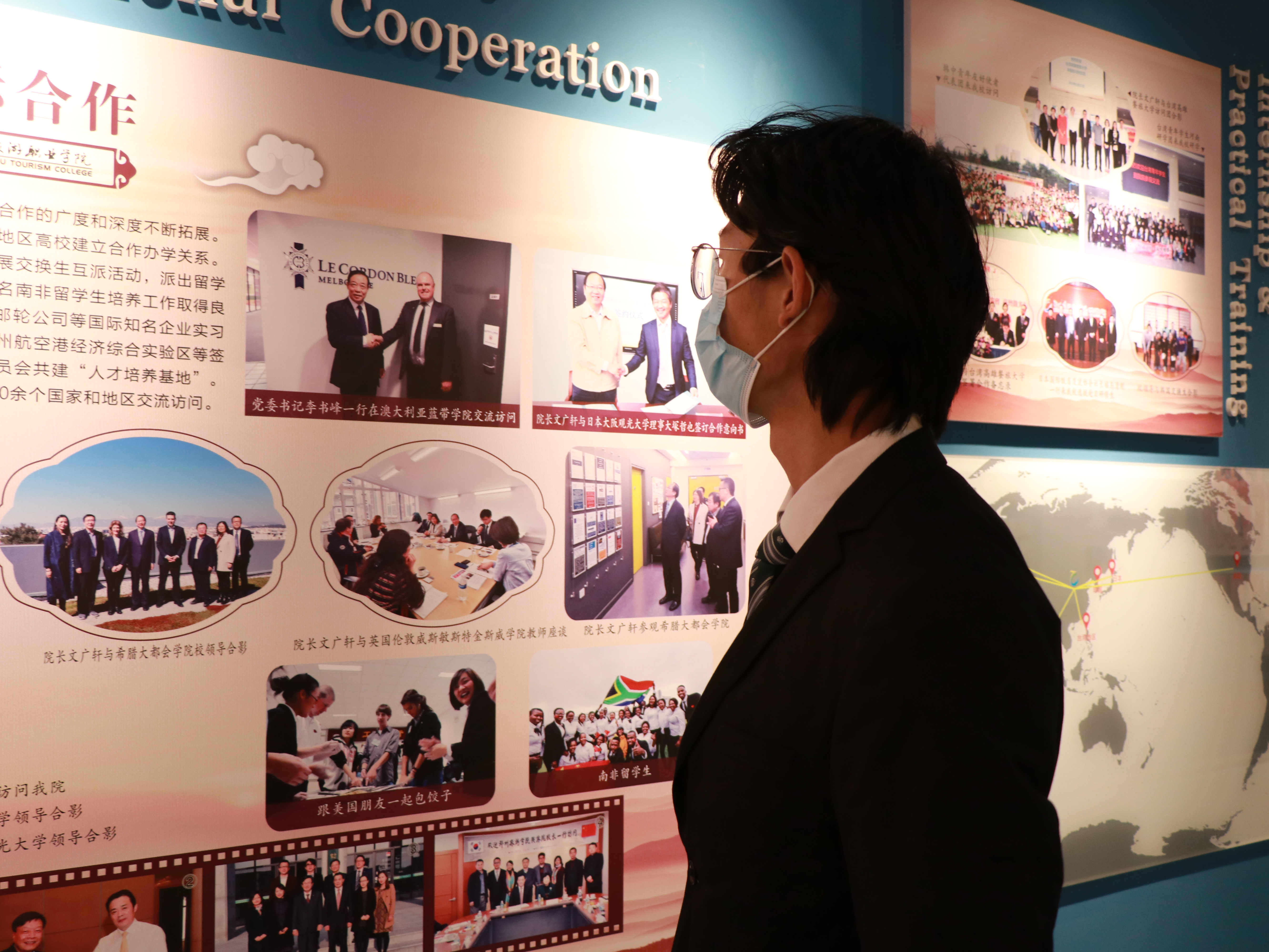 进入校史馆,解说员首先向大家介绍了郑州旅院职业学院近35年的悠久历史。校史馆内的每一件历史实物都承载着无数旅院人的记忆,勾起了同学们对于学校辉煌历史的遐想。同学们以眼观之,以心悟之,聚精会神地倾听讲解,不时驻足仔细观看实物与照片。