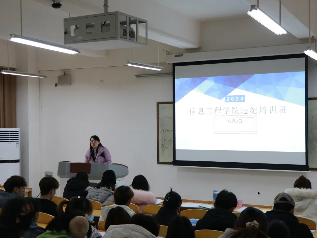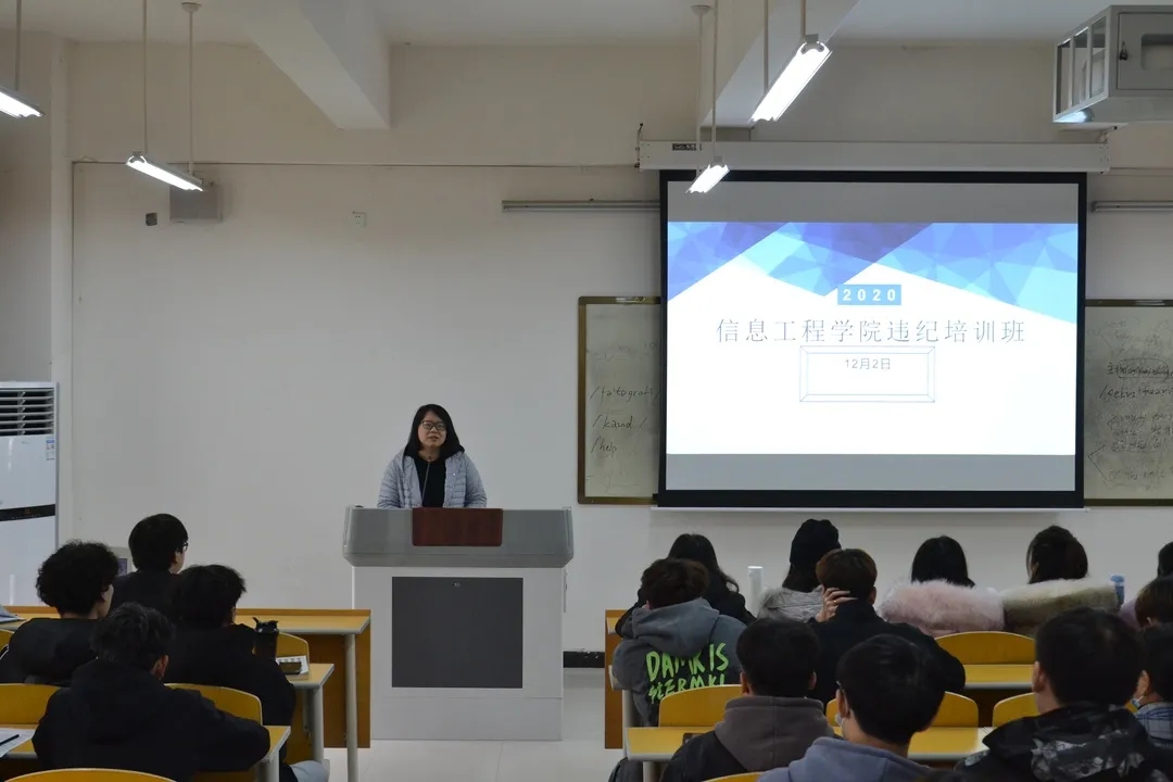 为使我院违纪学生遵章守纪,改变提升自我,做到会解决问题、会处理问题、会自我管理,按照学校规章制度规范自己的行为,我院于2020年12月2日下午1点在4b111教室召开本学期违纪培训班开班仪式暨第一讲,出席此次会议的有我院副院长杨慧丽,团总支书记李舒、辅导员付佳、冯思源、赵翊君、郑方园、庄恩嘉、马铭君。所有违纪学生按时参加会议,会议由辅导员郑方园主持。