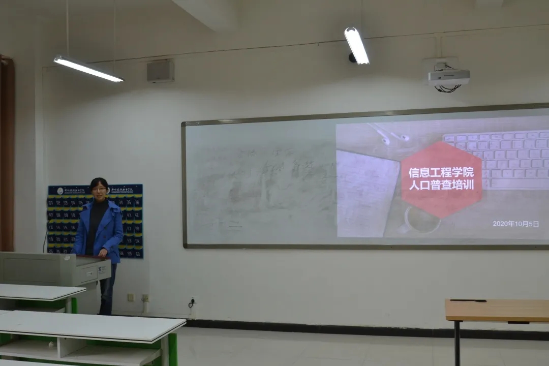 为确保人口普查工作的顺利开展,保质保量地完成此次人口普查工作,信息工程学院于10月5日中午在4A509教室召开人口普查培训会,本次培训会议由辅导员庄恩嘉进行现场讲解,19级全体班长以及17计网五年制班长参加培训。