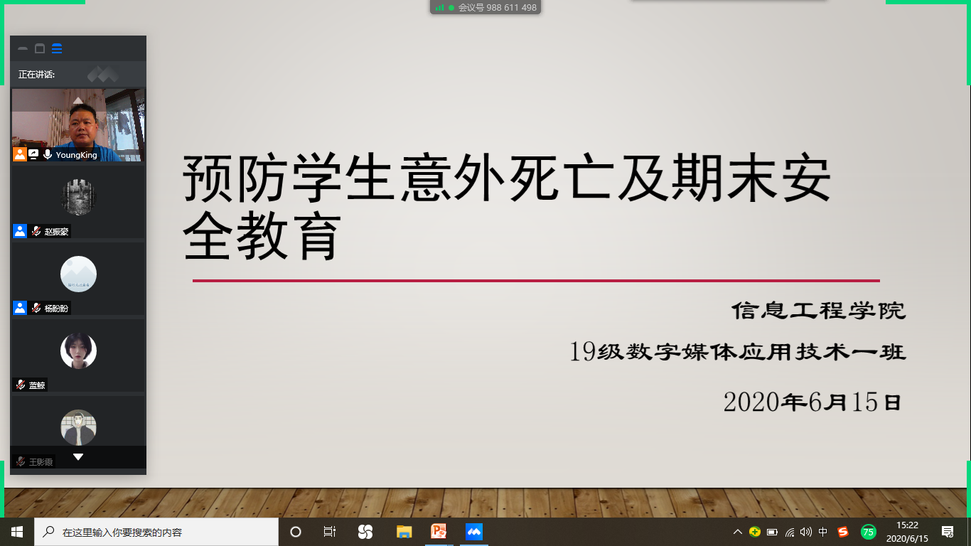 为预防学生意外死亡,特别是溺亡事故的发生,根据《河南省委政法委、河南省教育厅关于召开全省预防学生意外死亡工作推进会的通知》文件精神及学校要求,我院决定对召开以“预防学生意外死亡及期末安全教育”为主题的网络安志教育主题班会。