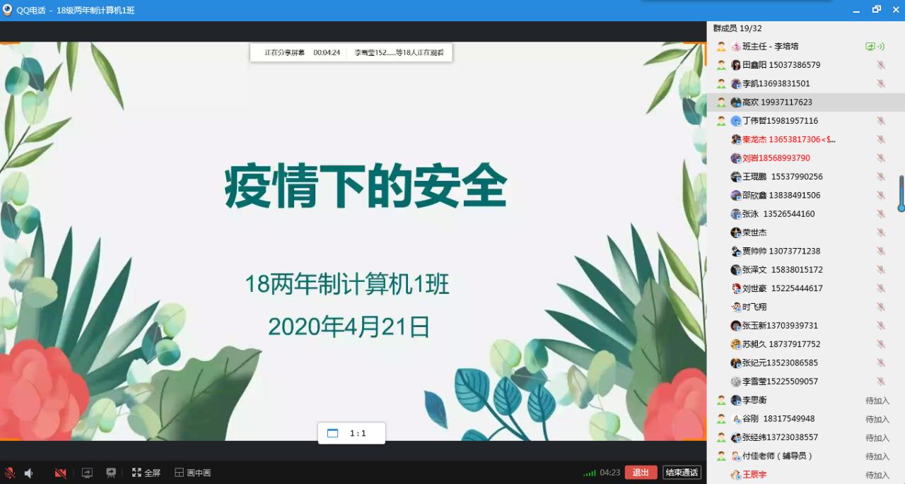 各班老师都认真准备班会,与学生们进行视频线上会议,班会主要内容包含: