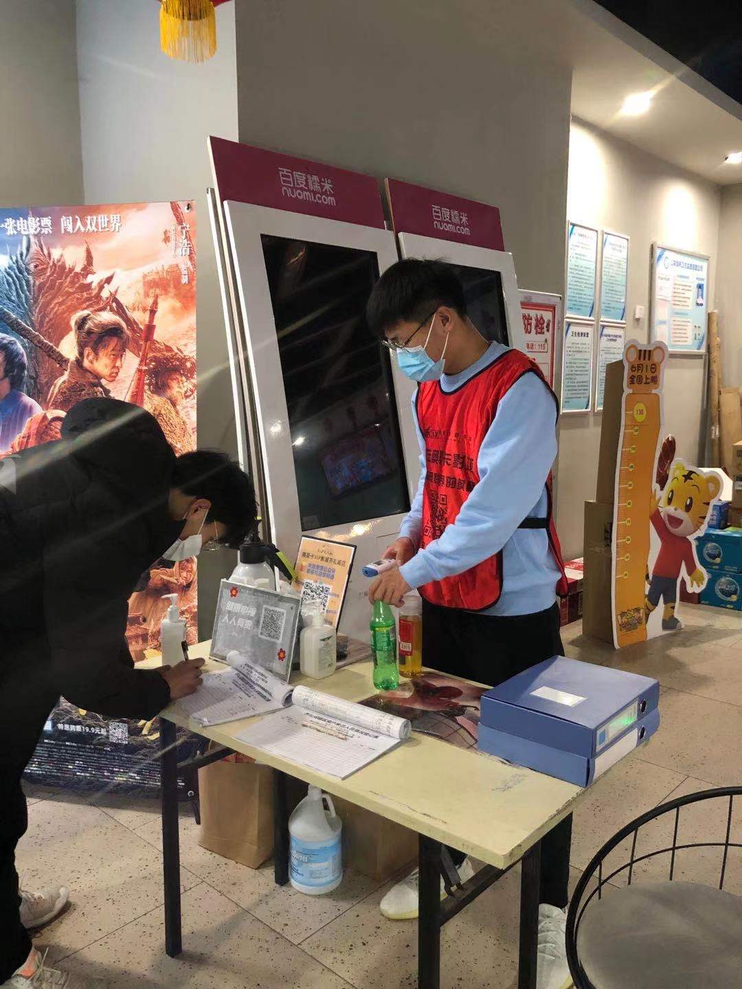 春节期间,影院人流量非常高,以高度的责任感来让观众扫码测体温,用多次消毒等方式为人民群众带来安全感,让人民群众观影放心,观影开心,让人民群众过一个幸福开心的春节。