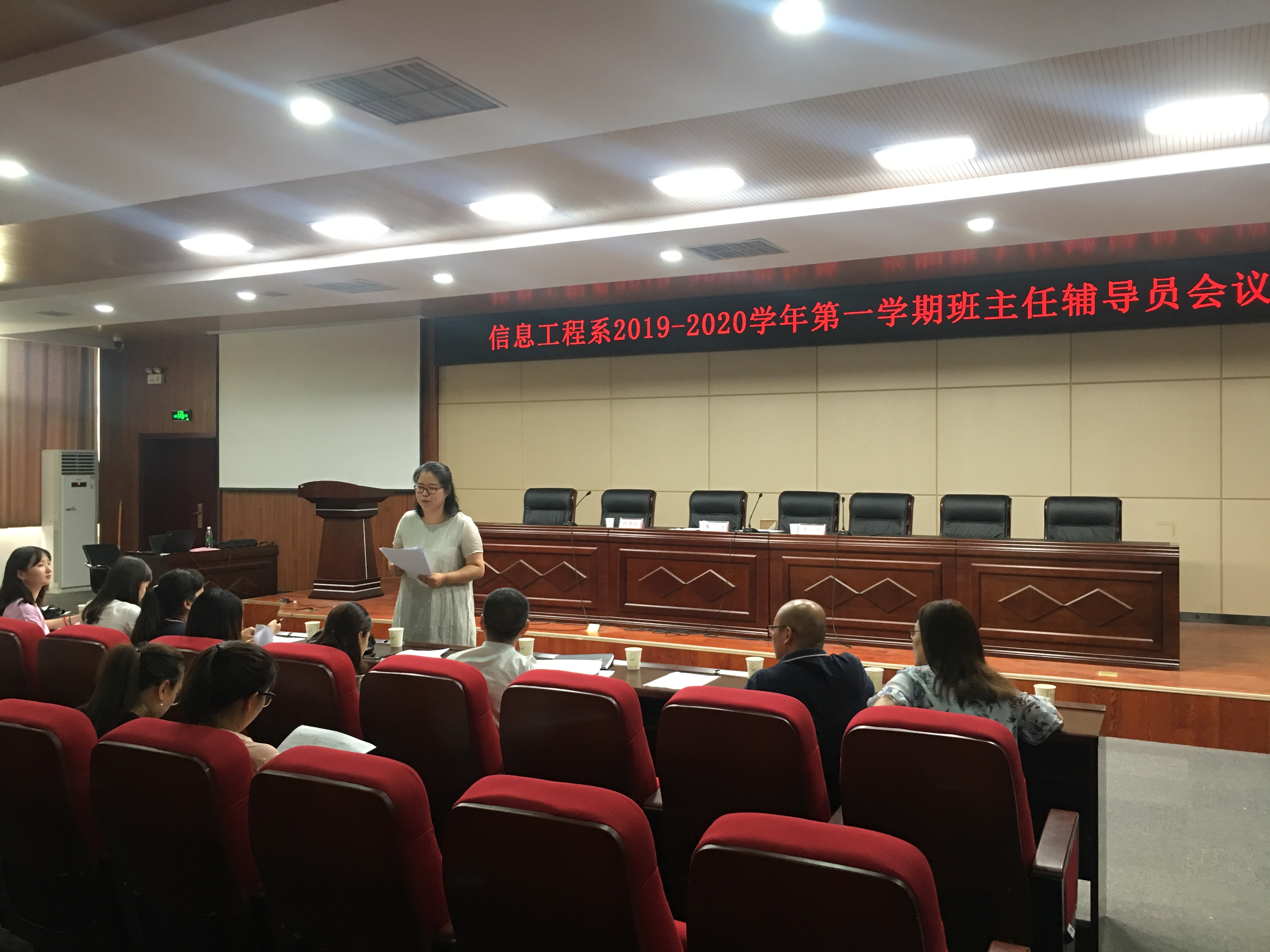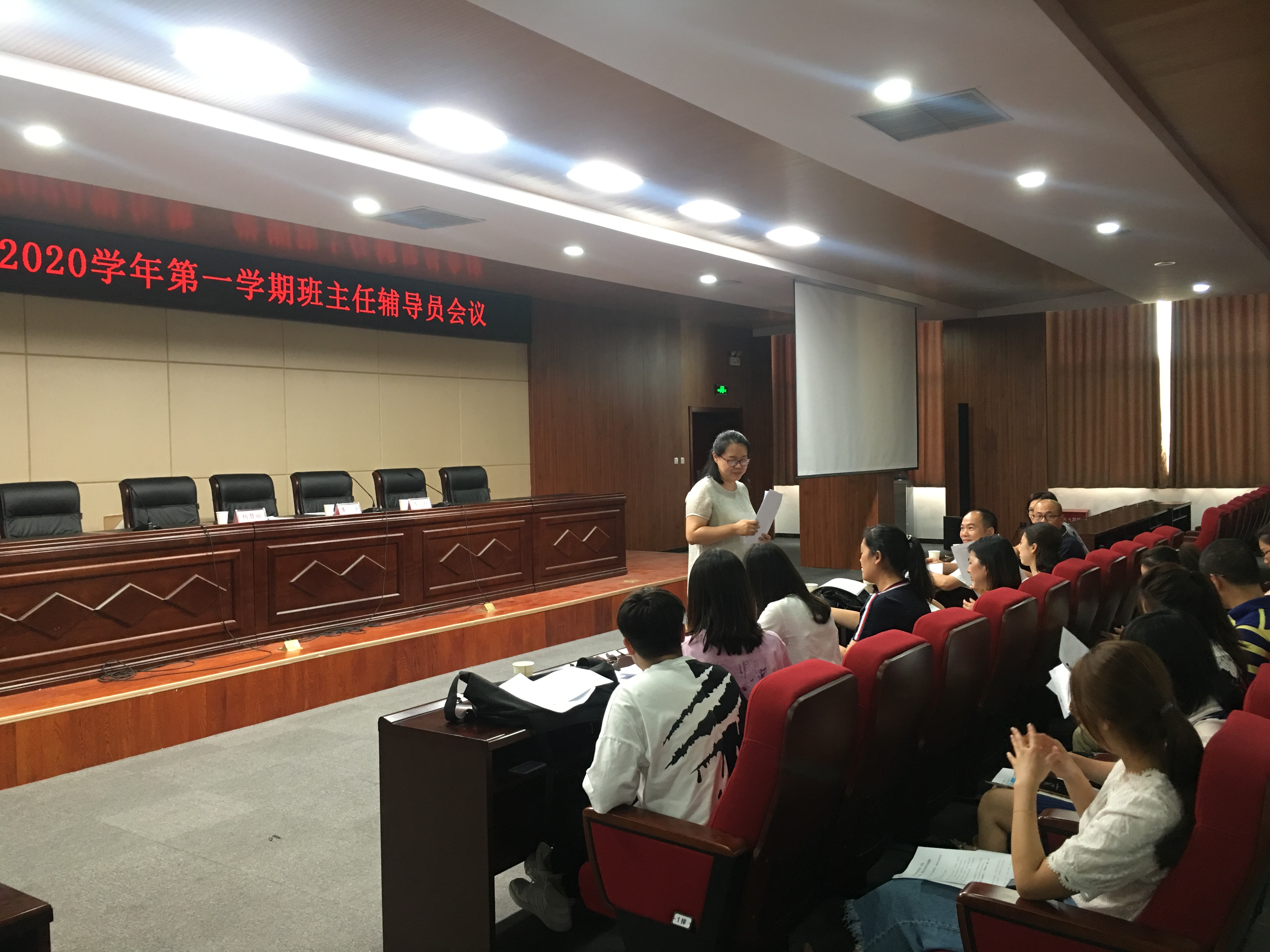 开学典礼结束后,我系于2019年9月1日下午16:50召开班主任辅导员会议,本次会议由副主任杨慧丽主持,全体在校生班主任与辅导员老师参加本次会议。