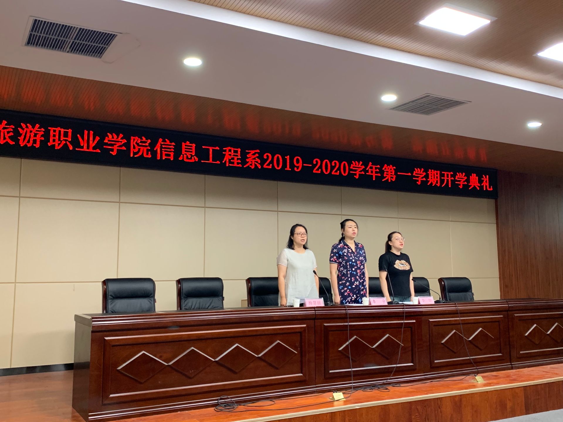 2019年9月1日下午4点,信息工程系在综合楼C座4楼会议室举行2019~2020学年第一学期开学典礼。我系副主任潘宁、副主任杨慧丽、团总支书记李舒、全体在校生班主任及辅导员老师们出席本次开学典礼,我系学生满怀热情地参加本次开学典礼。本次开学典礼由团总支书记李舒主持。