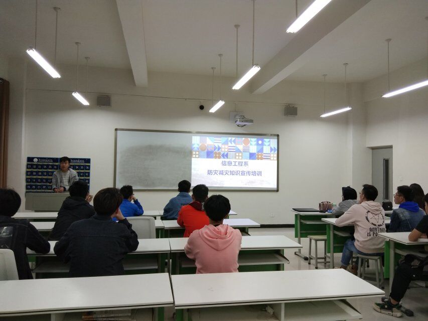 为保证我系学生校园生活的安全健康,提高我系学生防灾减灾的知识水平与技能。2019年3月19日18:30信息工程系18级各班在4A教学楼开展了“防灾减灾知识和技能教育”活动。