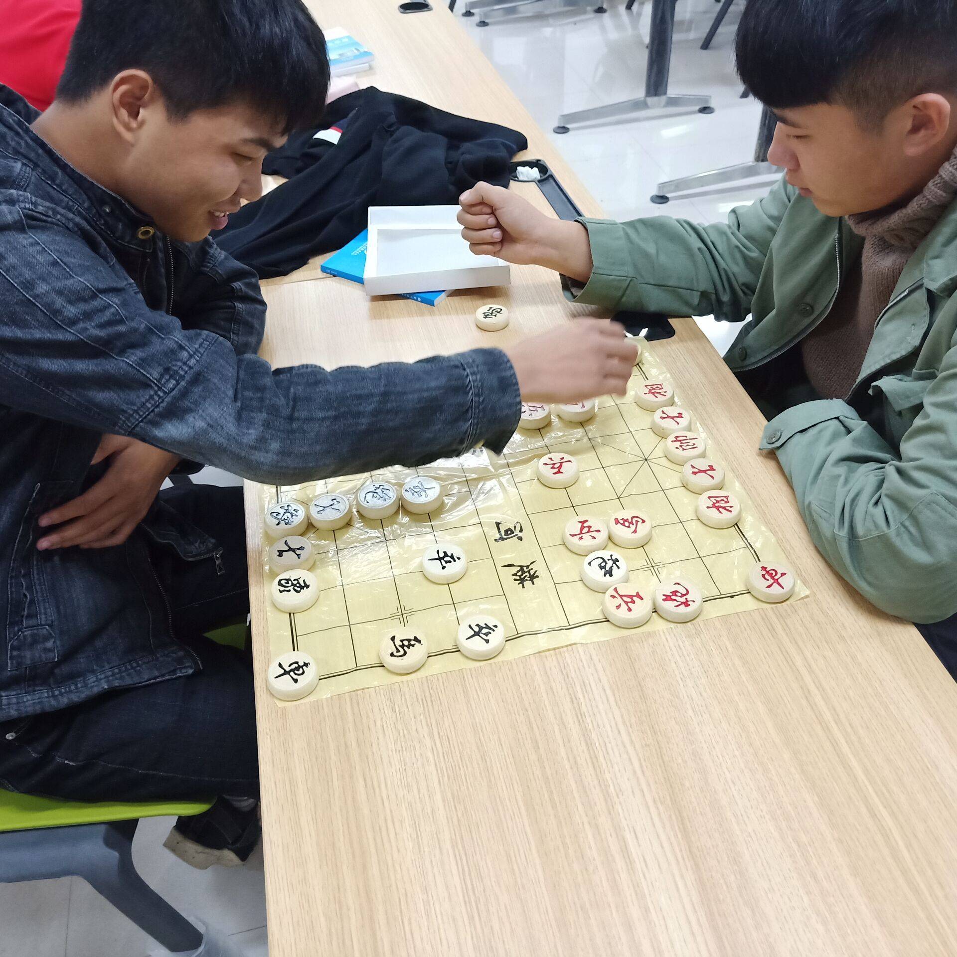 本次活动以棋艺交流为中心,主要通过自由对弈,大众参与的形式进行。活动项目有五子棋、围棋、象棋等都采取一对一模式。比赛规则可由任意两位选手自由对弈,获胜的一方可以选择继续下此棋种或选择去下其他棋种。同学们在跳棋与五子棋等趣味性较大的现代棋种之间的切磋十分精彩。在活动的最后也增加了游戏环节,使现场紧张的博弈气氛得到缓和。