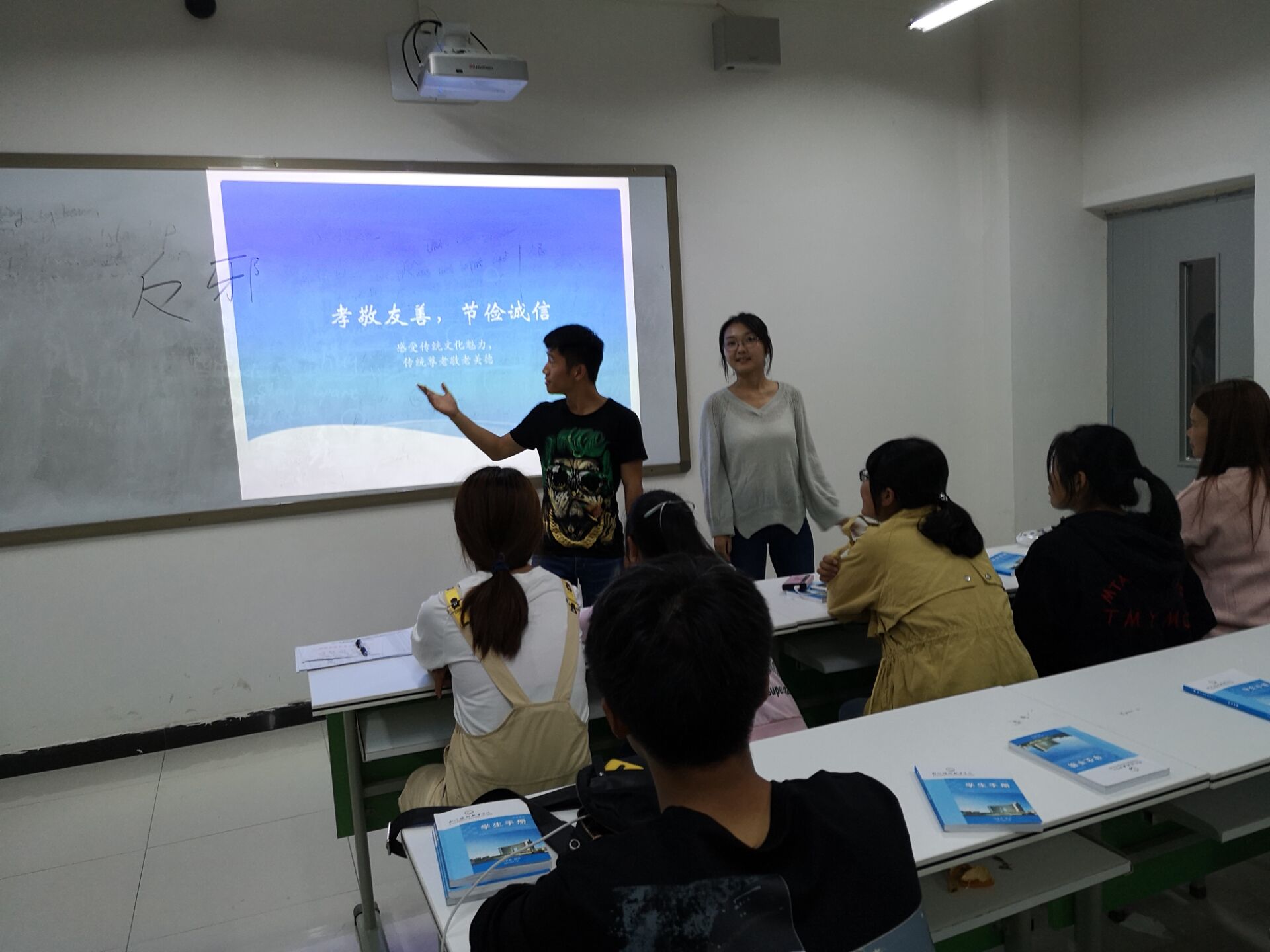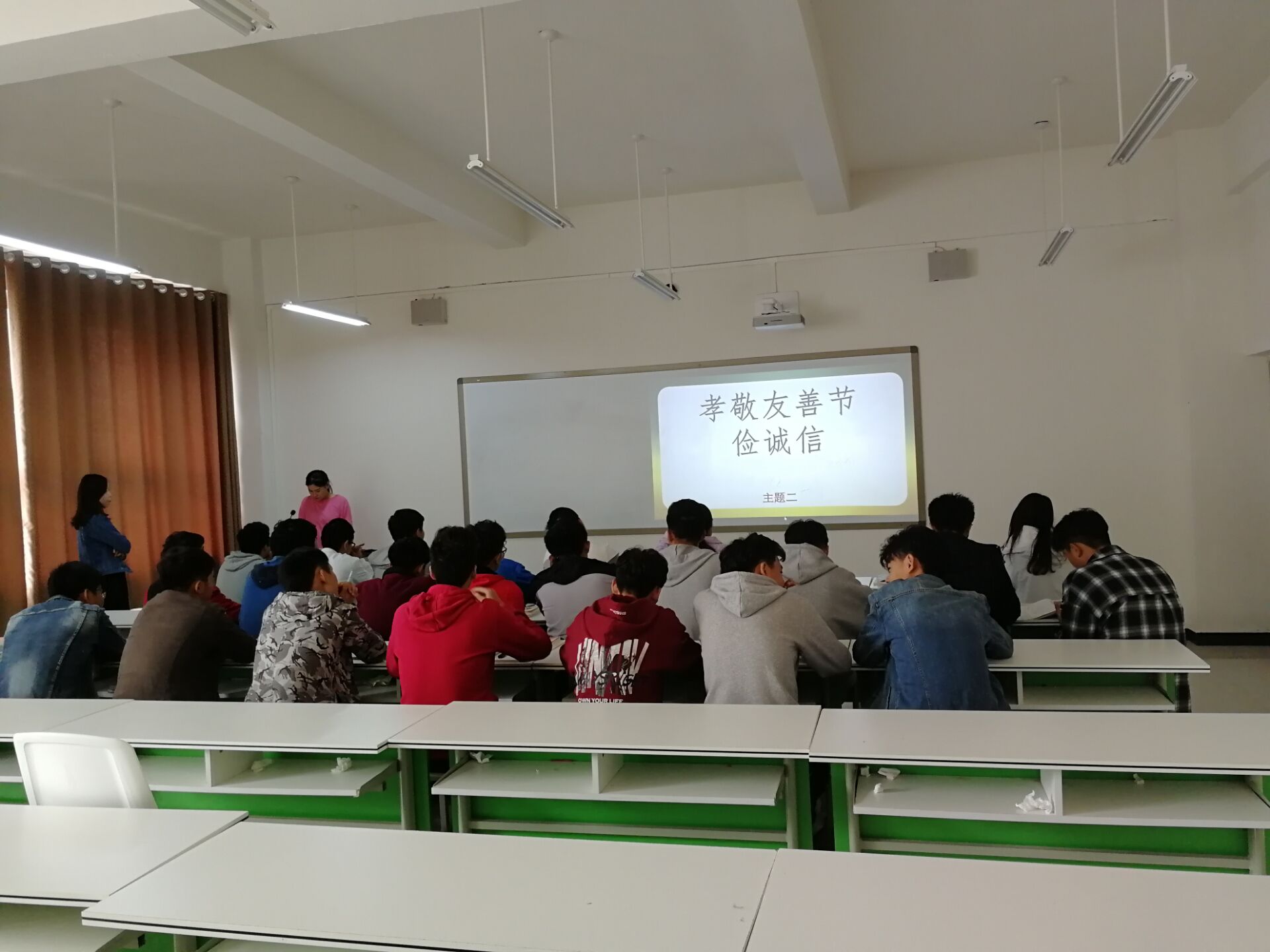 为引导师生感受传统文化魅力,传承尊老敬老美德,增强他们的民族自豪感,增强文化自信,引导他们珍惜亲情、热爱生活。2018年10月15日-10月16日信息工程系全体师生在4A教学楼开展“孝敬友善节俭诚信”主题班会。班会通过诗歌、诵读等形式展现了中华民族的传统美德,对学生进行了一次思想道德教育。班会过程中老师为同学讲解关于重阳节的文化知识,同学们积极诵读重阳节经典文化并感受到了传统文化魅力。