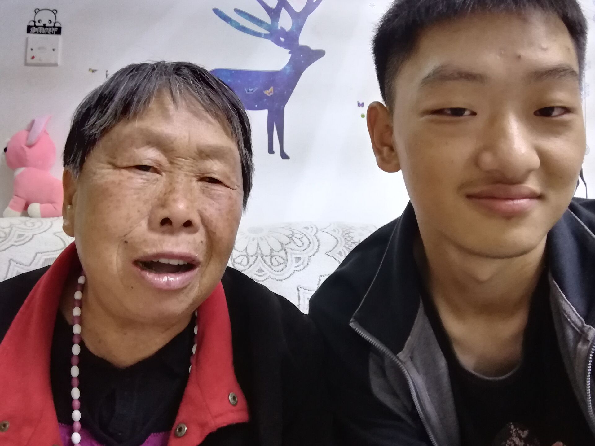 奶奶今年67岁了,家里已经是四世同堂,家里面人口虽多,但是该上学的上学,上班的上班,很少能在一起吃一顿饭。爷爷在三年前去世,从此奶奶在家里连个作伴的也没有了,从此每天就跑出去和附近的老年人一块出去散步,每天坚持做三餐,所以奶奶身体依然很健朗,自从爷爷走后,这是我第一次和她合影了,岁月虽然夺取了她的青春容颜,却夺不走她的精气神,现在的我虽然不能每天都在她身旁,但我会在放假的时候多回去看看,多陪陪她说说话。