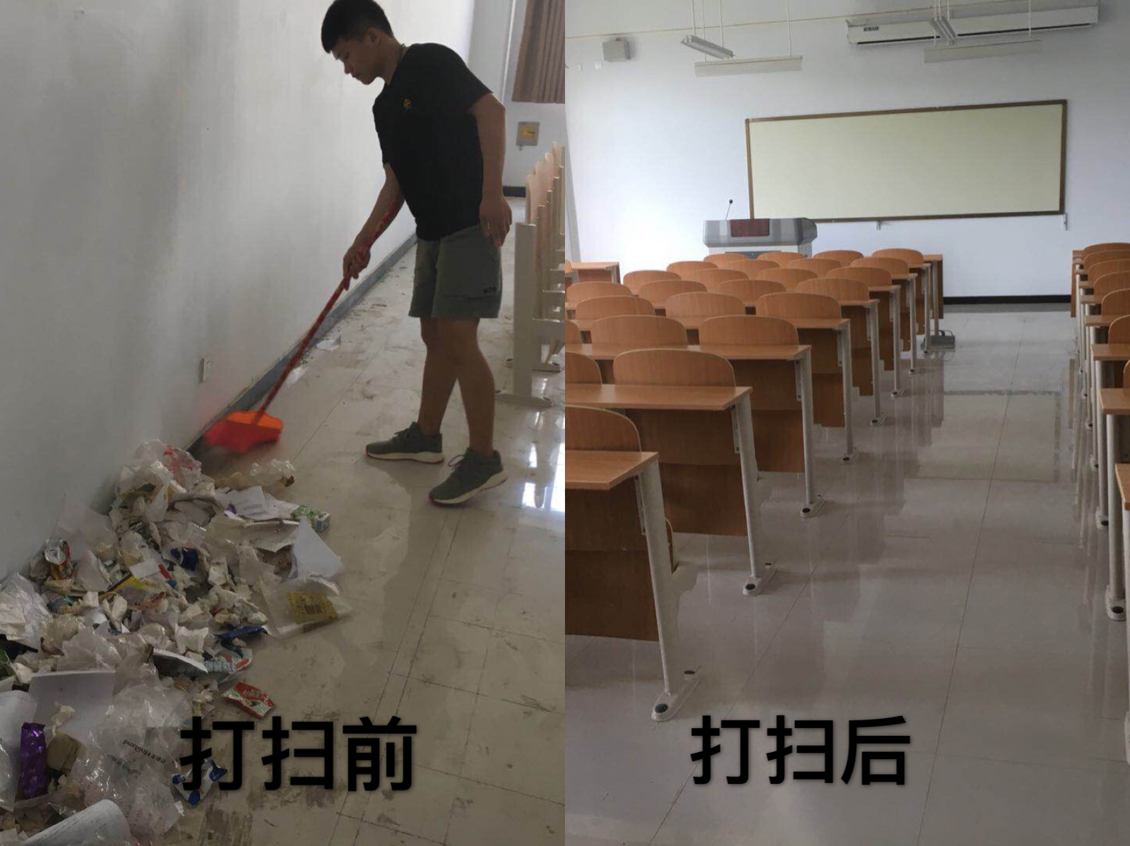 各班同学分工明确,各司其职对教学楼内部与教学楼外的绿地进行清扫。尽管天气炎热,但同学们仍然对卫生死角进行了全方位清理,包括绿地中的垃圾。信工系的班主任们也跟随16级同学们在清除杂草与垃圾,积存多日的垃圾一时间没了踪影,呈现在同学们面前的是干净整洁的校园。