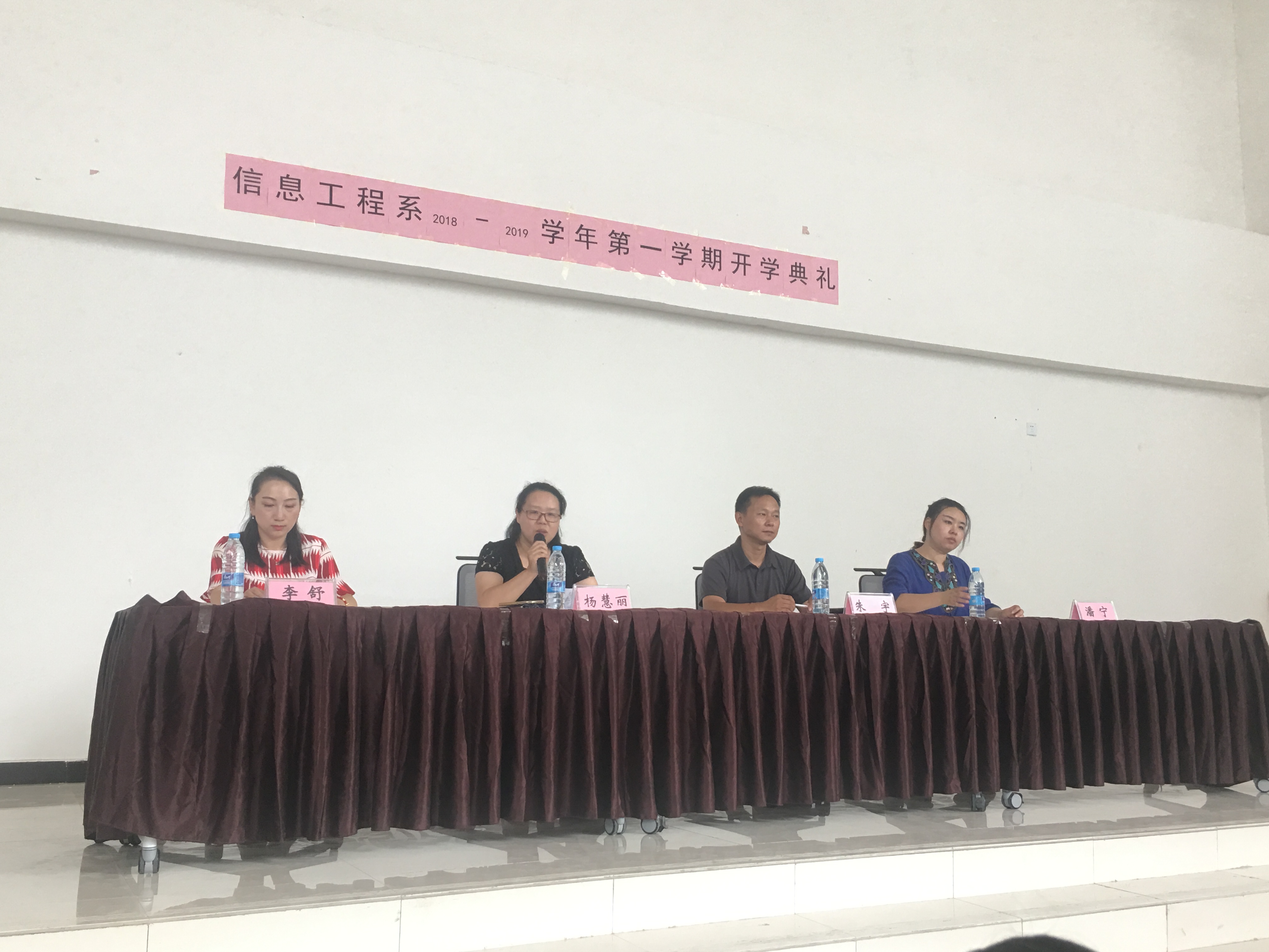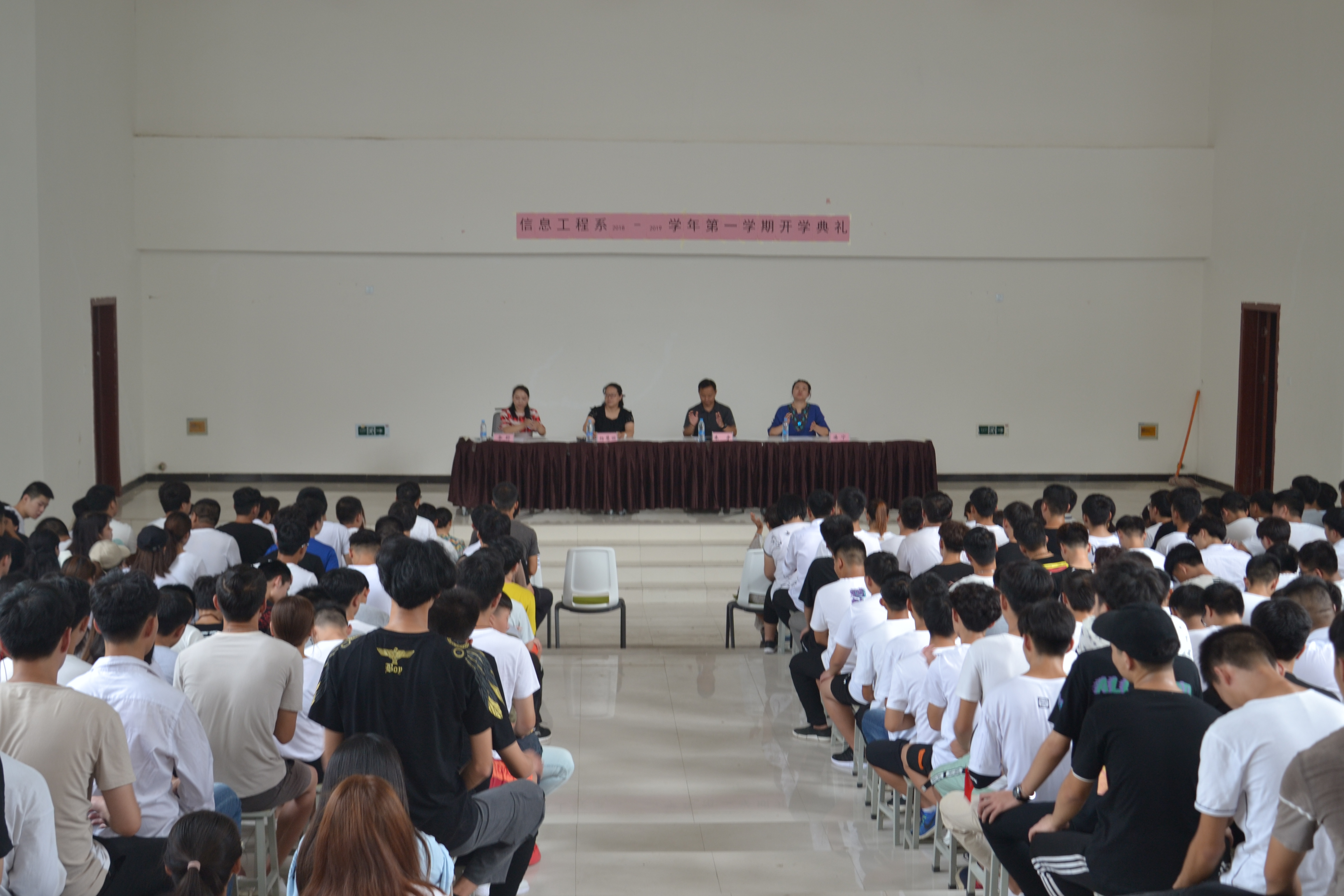 2018年9月2日下午两点,信息工程系在2B一楼礼堂举行2018-2019学年第一学期开学典礼。我系主任朱宇、副主任潘宁、副主任杨慧丽、团总支书记李舒、信息工程系全体辅导员与班主任老师及全体在校学生参加本次开学典礼。开学典礼由团总支书记李舒主持。
