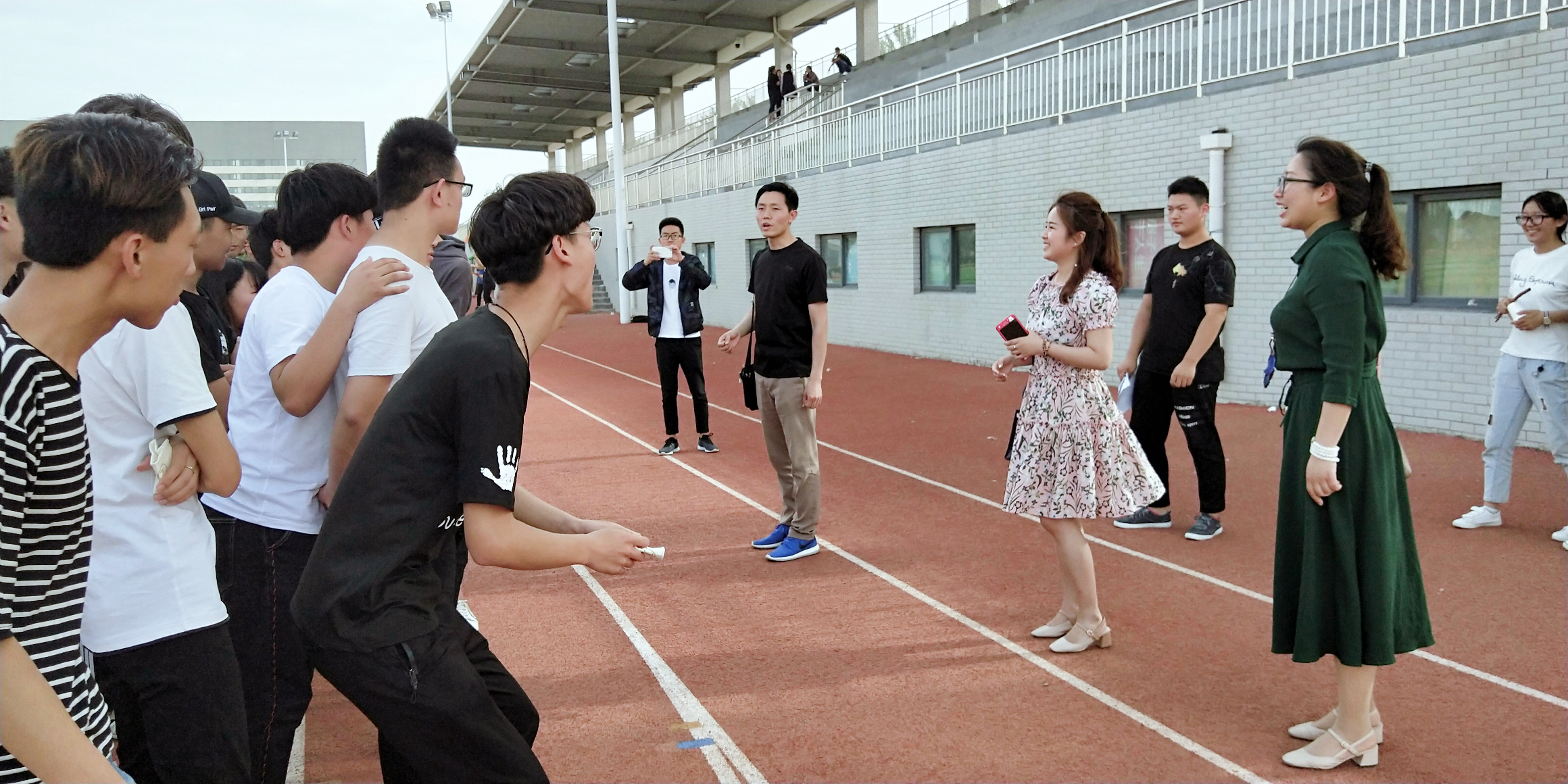 我系辅导员老师们赛前为大家加油