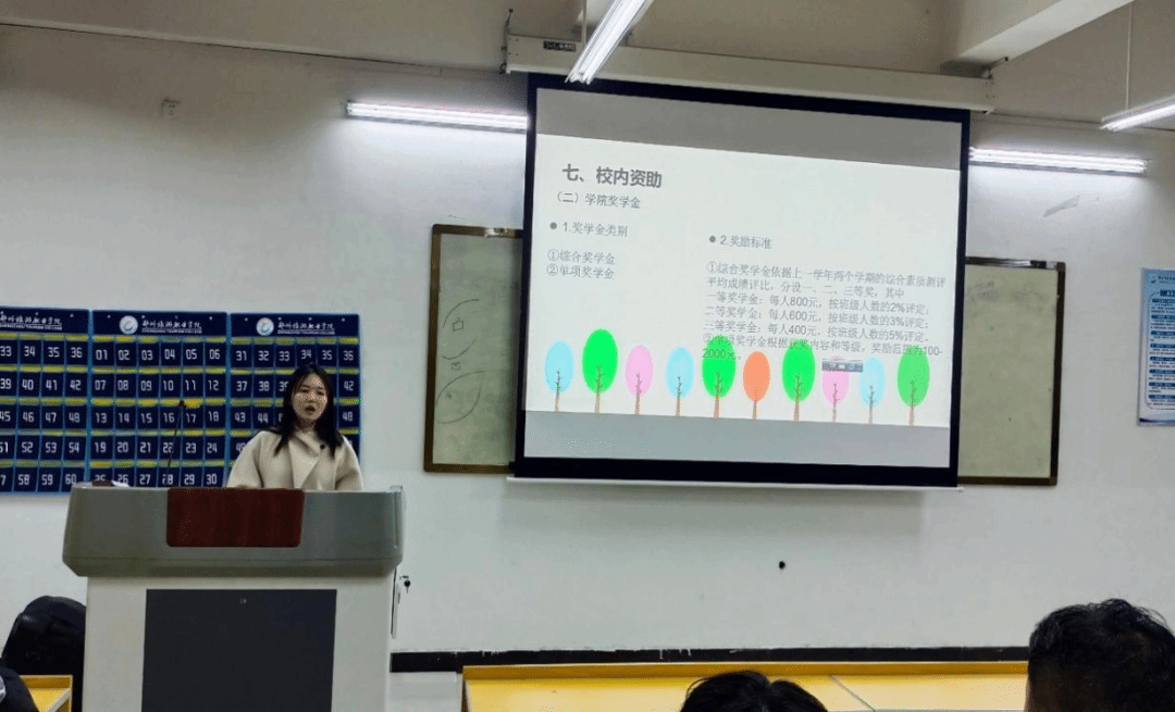 活动中,信息工程学院辅导员郑方园分类别向同学们解读宣传了国家励志奖学金、国家助学金、国家助学贷款、勤工助学、冬季补贴、学费减免等各项资助政策;接着,详细解读了各项资资助政策的申请条件、申请程序、注意事项、认定标准、评议制度等各方面事宜,全面宣讲在校学习期间国家及学校出台的各项资助政策及具体的申请、发放操作办法,确保家庭经济困难学生在校期间得到有效资助,解除家庭经济困难学生进入下一阶段学习的后顾之忧,确保每一个学生不因家庭经济困难而失学。