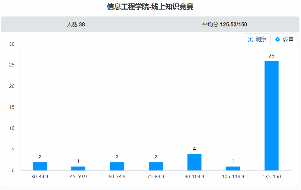 为了提升宣传效果和检验学习效果,学院特别采用了问卷调查的形式,让学院老师通过自主学习和参与调查,进一步增强对相关法律法规的认识和理解。调查结果显示,本次考试共有38人参加,平均分为125.53分,最高分为150分,从成绩分布来看,本次考试的整体表现较为优秀。大部分老师能够熟练掌握法律法规,并运用到实际生活中。这种形式不仅提高了教师的学习积极性,也为学院了解教师的法律素养提供了有力依据。