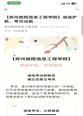 为了进一步加大诚信教育的宣传力度,学校依托公众号平台,发布了有关诚信考试教育宣传文章,还针对专升本学生,组织他们观看了专升本考试宣传教育视频。这些视频生动形象地展示了考试作弊的危害和后果,引导学生们树立正确的考试观念