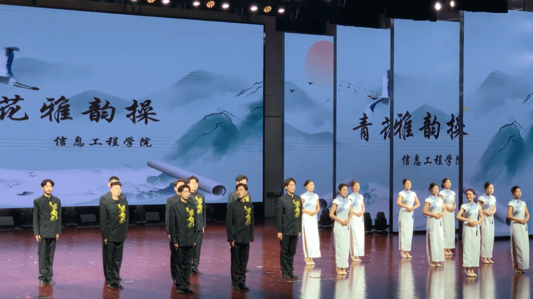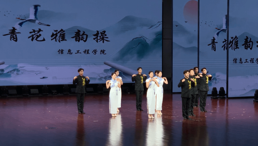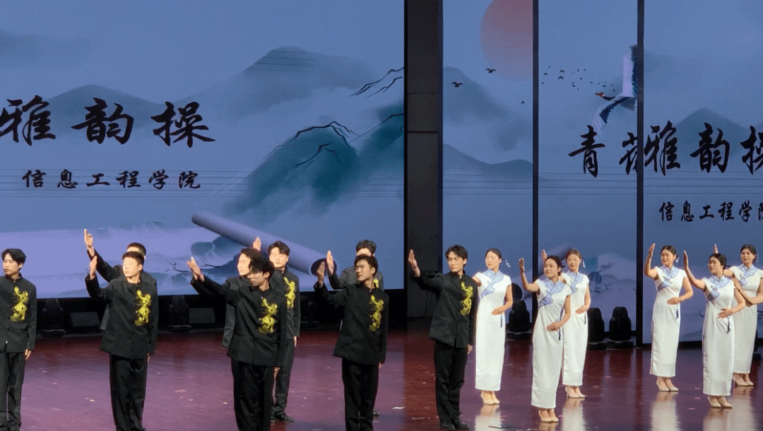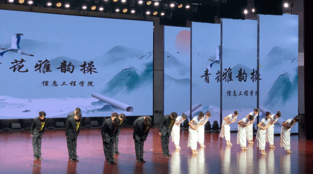 在比赛中,信息工程学院共为大家呈现了两个精彩纷争的节目,首先登场的是学生们精心练习的礼仪操。站姿、蹲姿、坐姿、手势展示礼、鞠躬礼……每一个动作标准、流畅、自然,每一处细节整齐一致、处理到位。在整个比赛过程中,信息工程学院参赛选手精神饱满,热情昂扬。得体而自然的微笑,传递着友善与尊重,让台下师生感受到职业礼仪的美好与力量。充分展现出了信工学子的礼仪之美以及文明修养。