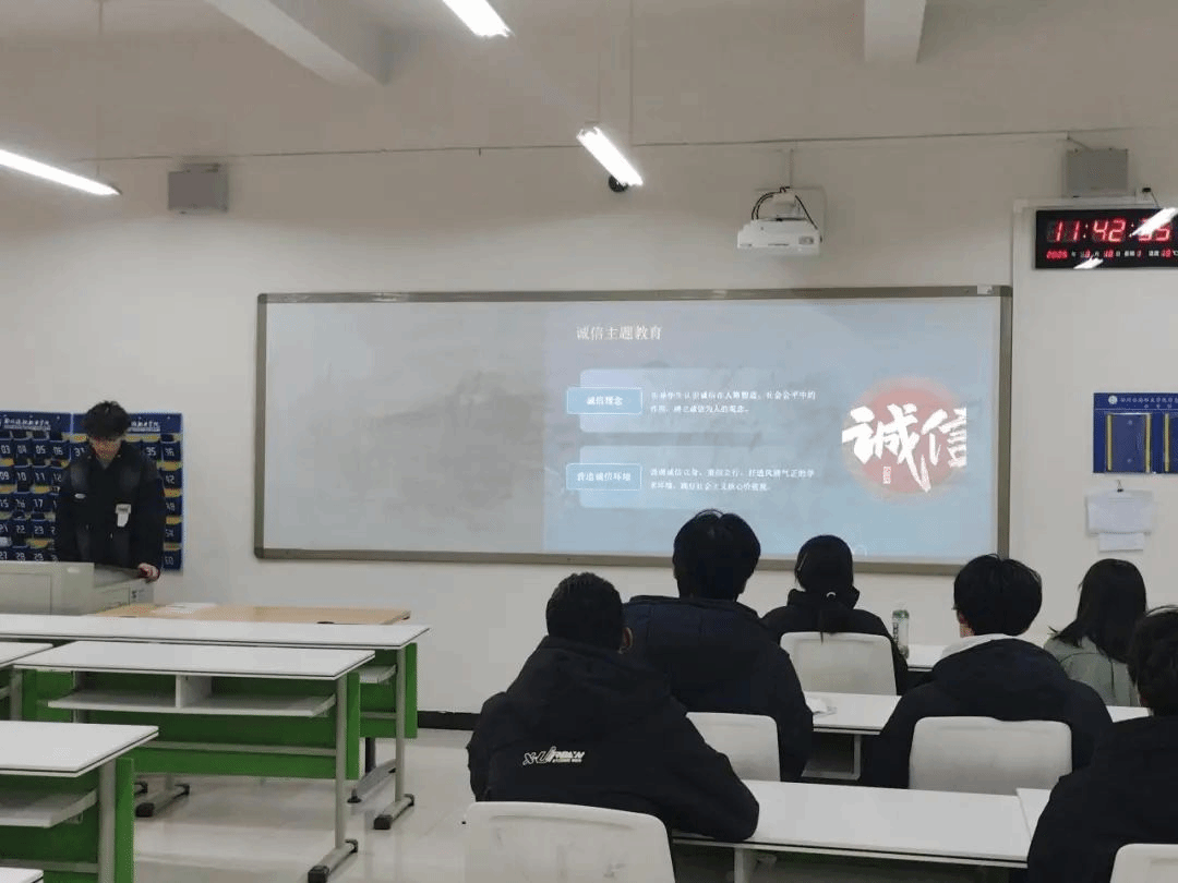 班会开始,通过播放警示教育宣传片和诚信考试宣传动画,生动展示了诚信的重要性以及失信的严重后果。随后,同学们围绕诚信话题展开热烈讨论,结合学院案例与专业特点,分享了自己对诚信的理解和感悟。大家一致认为,诚信不仅是个人品德的基石,更是学业和未来事业成功的保障。