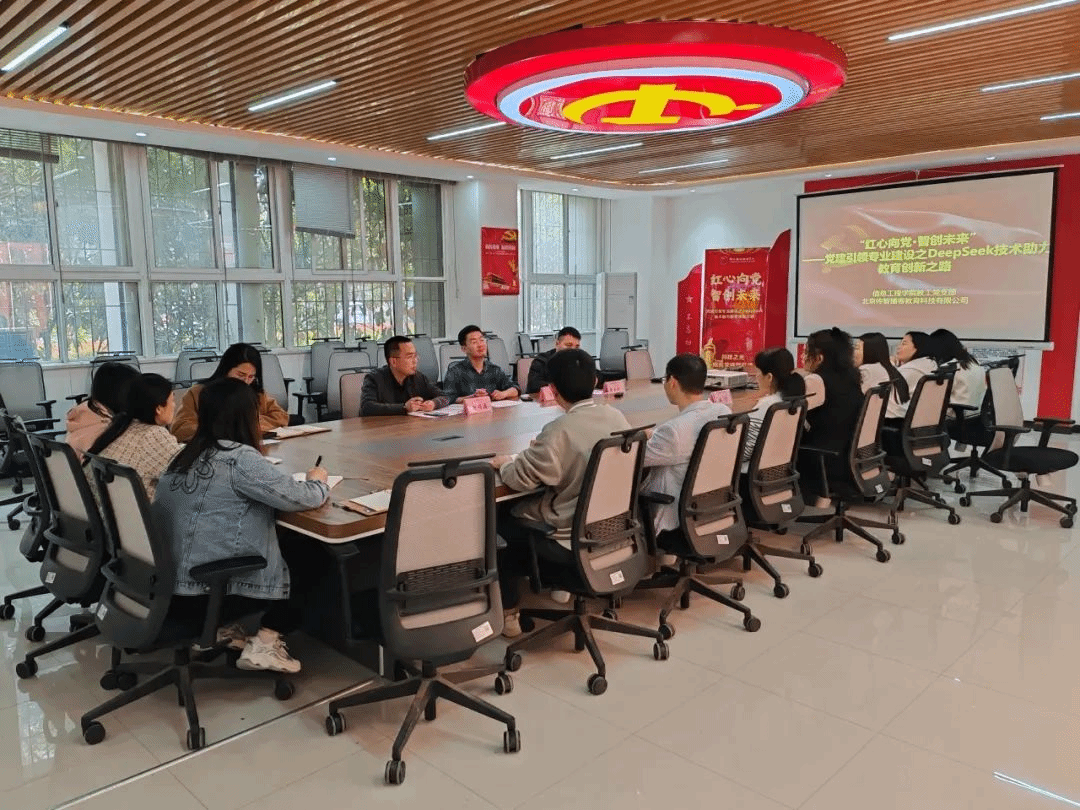 3月26日下午,信息工程学院教工党支部与传智播客教育科技有限公司于4A103会议室联合开展了党建引领专业建设活动。信息工程学院院长潘宁、计算机网络技术教研室主任杨怀磊及教研室全体党员和传智教育人工智能领域专家谢硕磊、李刚、周安安等人参会。双方就人工智能专业的发展方向、课程设置、人才培养及师资储备等关键问题进行了深入讨论和交流。
