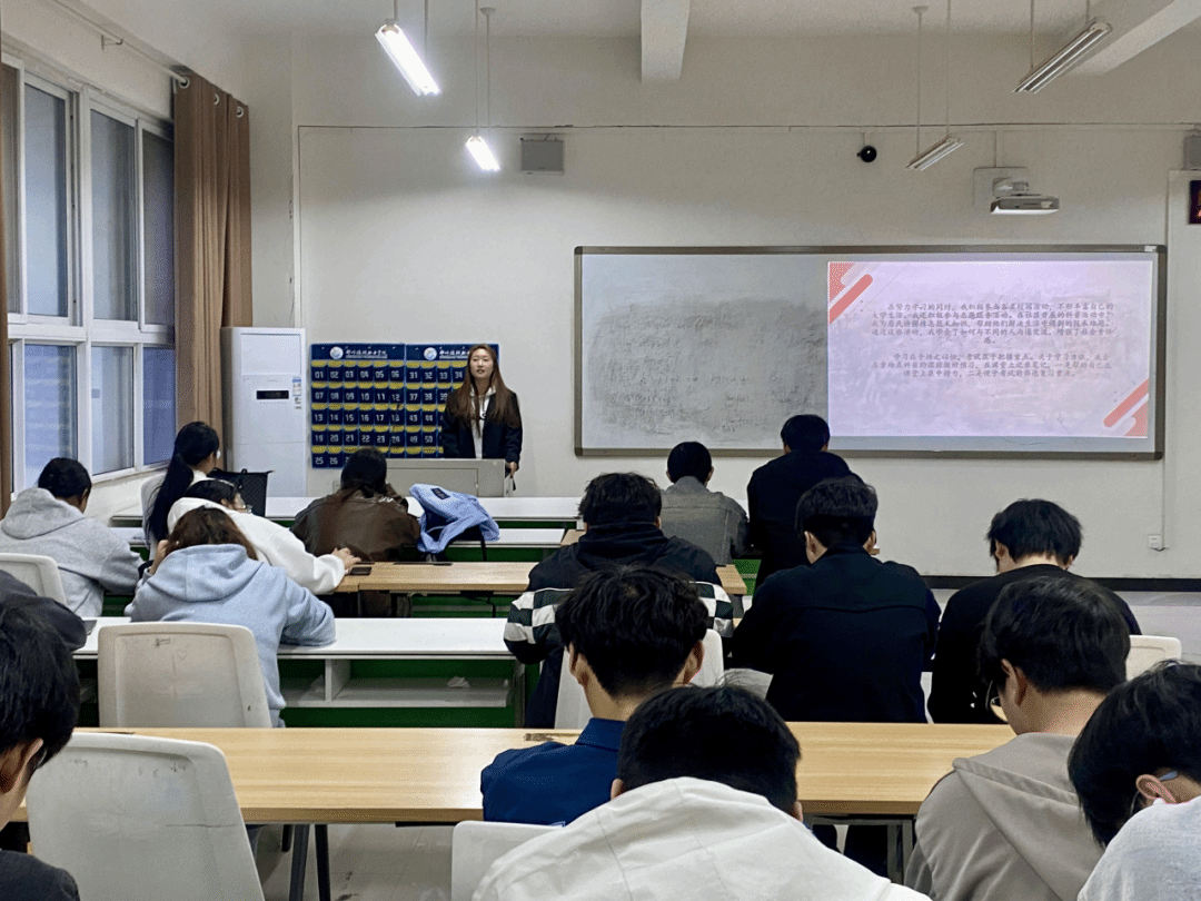 在宣讲过程中,国家励志奖学金获得者任香青同学结合自身经历,毫无保留地向学弟学妹们倾授学习方法,从如何制定科学的学习计划,到怎样高效利用课余时间,都一一向学生们进行分享。同时她还分享了参与社会实践、社团活动的宝贵经验,以及在这些经历中的蜕变与成长。每一段故事,每一点心得,都凝聚着奋斗的汗水,彰显着青春的拼搏精神。
