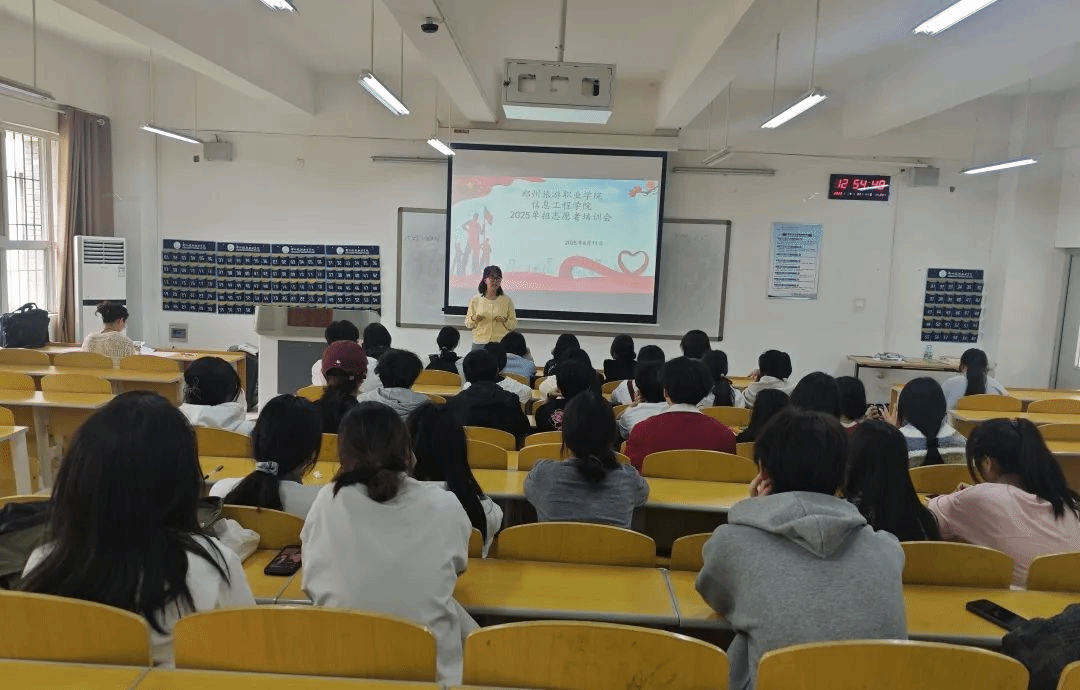 为确保2025年单招考试志愿服务工作高效、有序开展,pp电子游戏平台网站信息工程学院于2025年4月11日组织开展了单招志愿者培训活动,为即将到来的单招考试提供坚实的服务保障。
