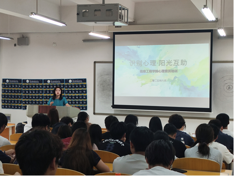为深化心理健康教育工作实效,提升心理委员的朋辈帮扶能力,做好心理自助与互助工作,帮助学生在期末考试前有效调节心理状态,6月25日下午,我院于4B111开展“识别心理 阳光互助”心理委员培训。本次培训由学工办代主任付佳主讲,各班心理委员、班委参与培训。