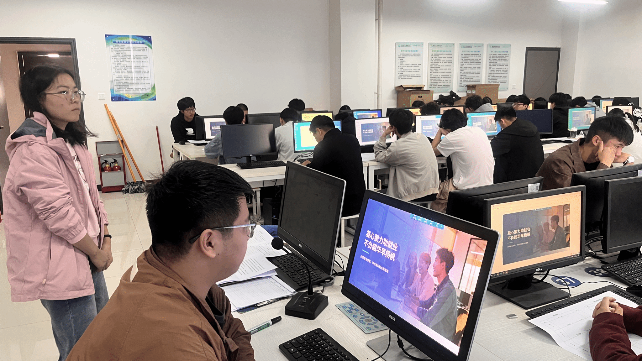 班会内容丰富,班主任首先介绍了当前就业形势,并结合《河南省大学生就业创业服务指南》进行了就业创业政策宣讲。随后,组织学生观看了《如何找到奋斗一生的事业》数字课程,引导学生思考如何将个人兴趣、优势、价值观与国家需要、市场需求相结合,寻找职业方向。