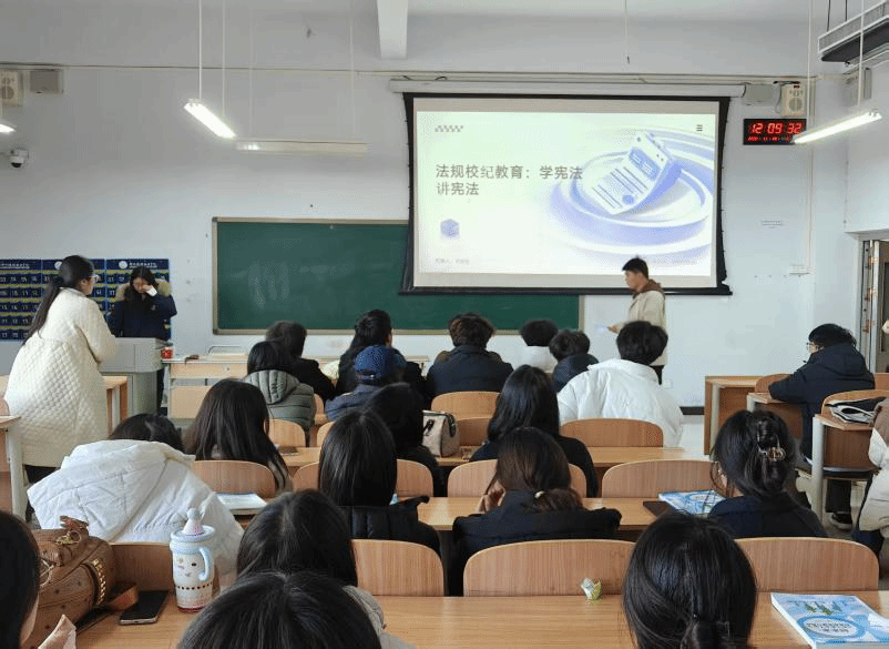 为深入学习贯彻党的二十大精神与习近平法治思想,推动青少年宪法宣传教育常态化长效化,在第十二个国家宪法日暨教育系统宪法学习周来临之际,我院于2025年11月24日-2025年11月26日组织全体班级开展“法规校纪教育——学宪法、讲宪法”主题班会,让宪法精神浸润校园,让校纪规范入脑入心。