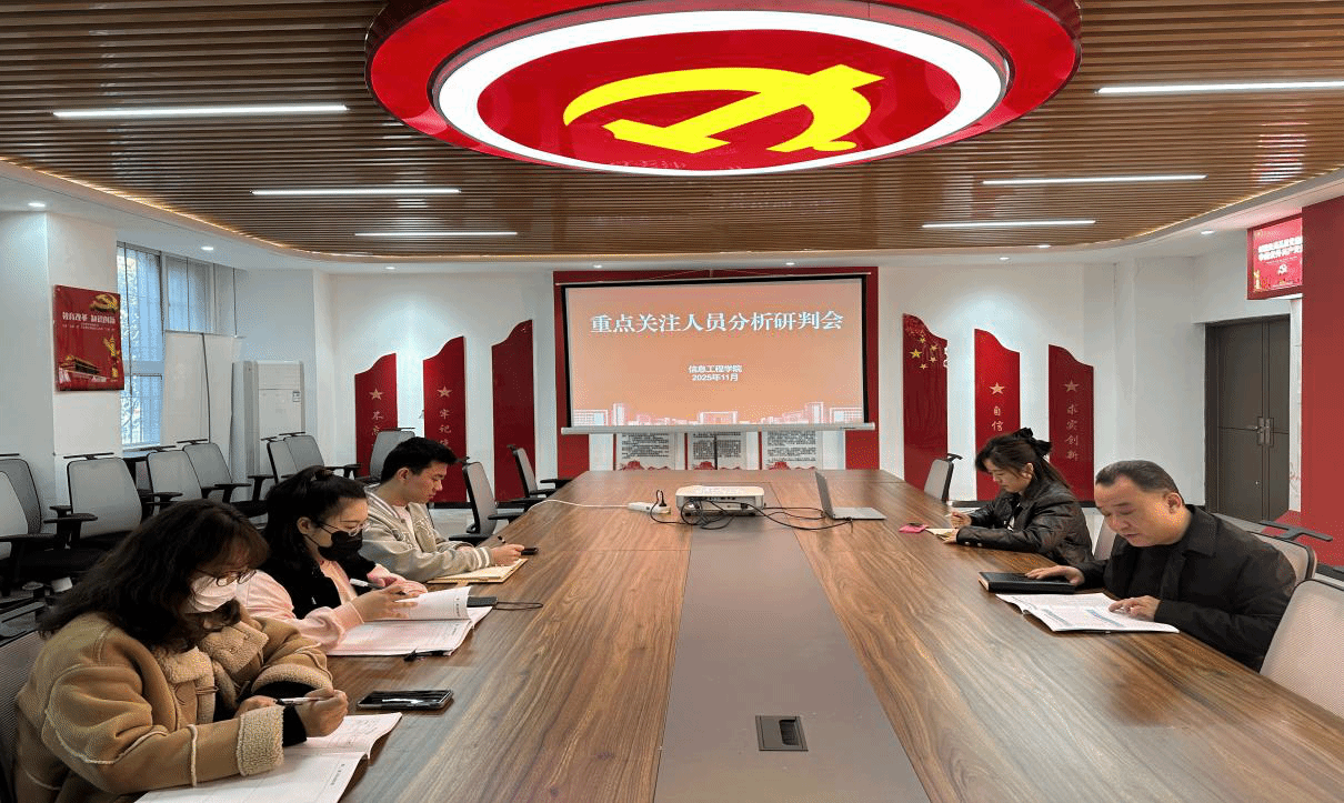 不断夯实学院学生心理健康教育基础,精准摸排重点关注学生心理状况,切实落实心理问题早发现、早介入、早解决的工作要求,11月26日,信息工程学院在4A103会议室组织召开11月重点关注人员分析研判会,学院党总支书记周鹏、学工办代主任付佳以及全体专职辅导员共同参会。