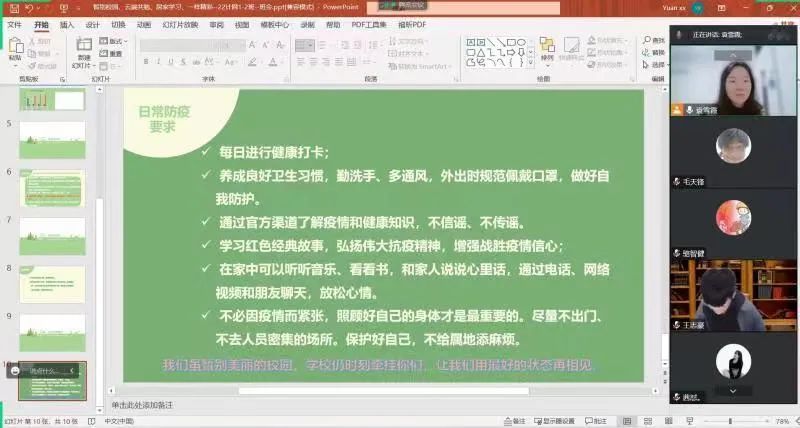 最后,各位老师告诉同学们,不必因疫情而紧张,照顾好自己的身体才是最重要的,我们虽暂别美丽的校园,学校仍时刻牵挂大家,期待大家用最好的状态再相见。