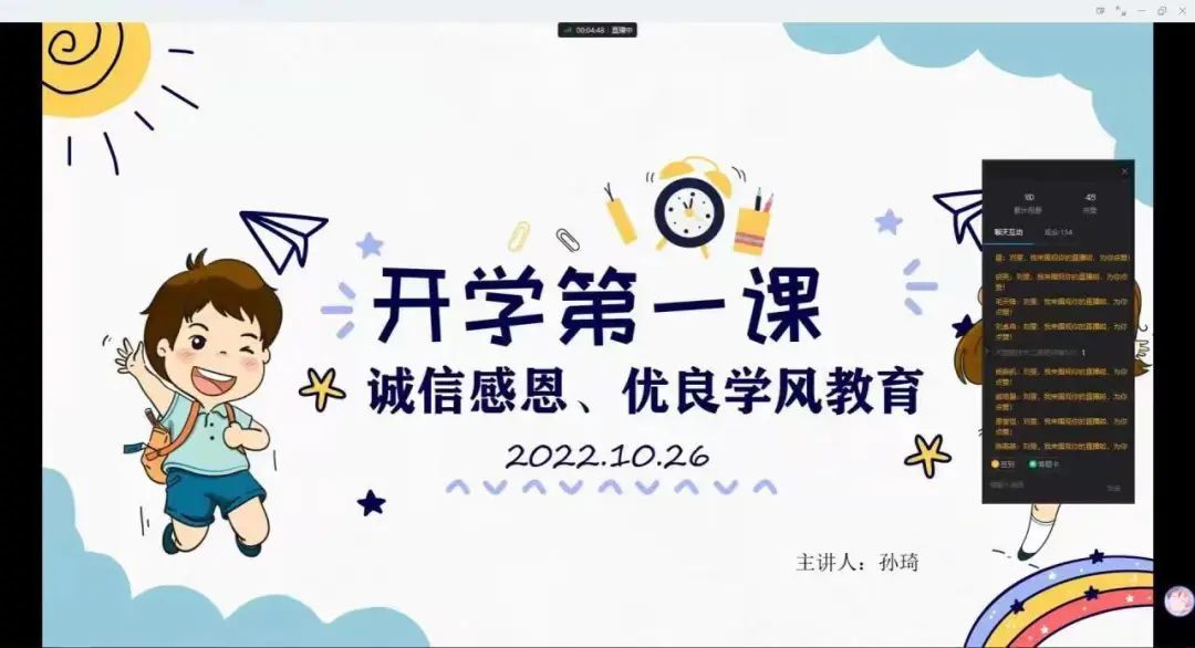 为了进一步加强学生自身道德修养,弘扬诚信感恩的传统美德,更好的贯彻执行pp电子关于新生入学教育法纪校规及学风建设的方针政策,让学生熟悉了解在校期间必须遵守的规章制度,树立责任意识,培育良好的道德品德,信息工程学院于10月26日下午14:00~15:00通过线上直播的方式召开新生入学教育线上课堂第五讲,由辅导员孙琦主讲,22级全体新生参加。