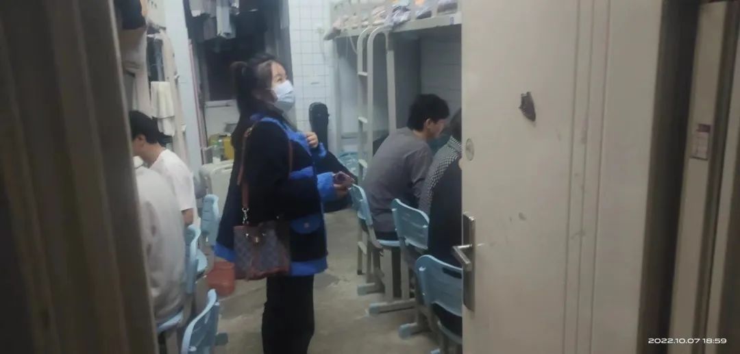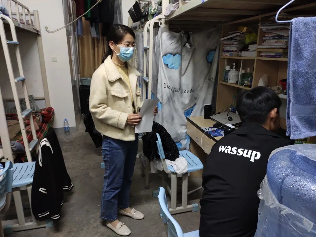 走访过程中,每到一处,辅导员们都向学生强调疫情管理期间出入宿舍的规定和寝室用电安全、内务整理等事宜,对环境卫生较好、宿舍氛围活跃的宿舍进行表扬,对存在问题的寝室提出了整改建议和鼓励关切。
