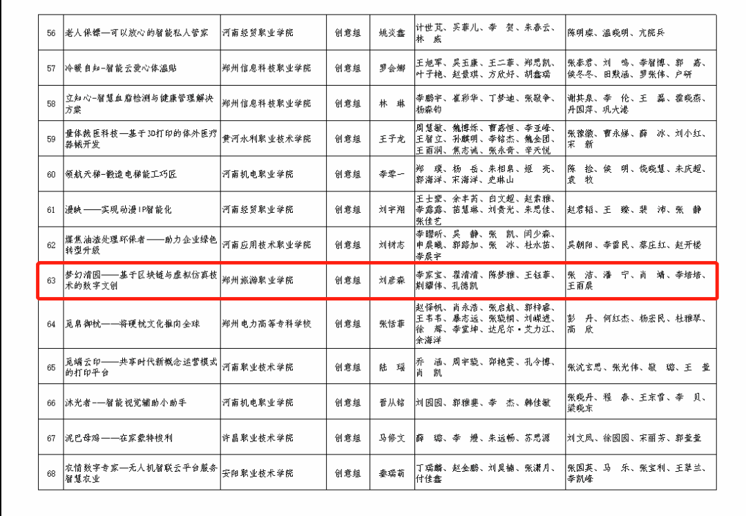 此次大赛信息工程学院共有3个项目入围省赛,《E创守艺》立足传承技艺、守护匠心,打造文化富民助力乡村振兴,充分展现了我院学生的创新活力和创业激情,此项目最终获得了第八届中国国际“互联网+”大学生创新创业大赛职教赛道河南赛区选拔赛三等奖。