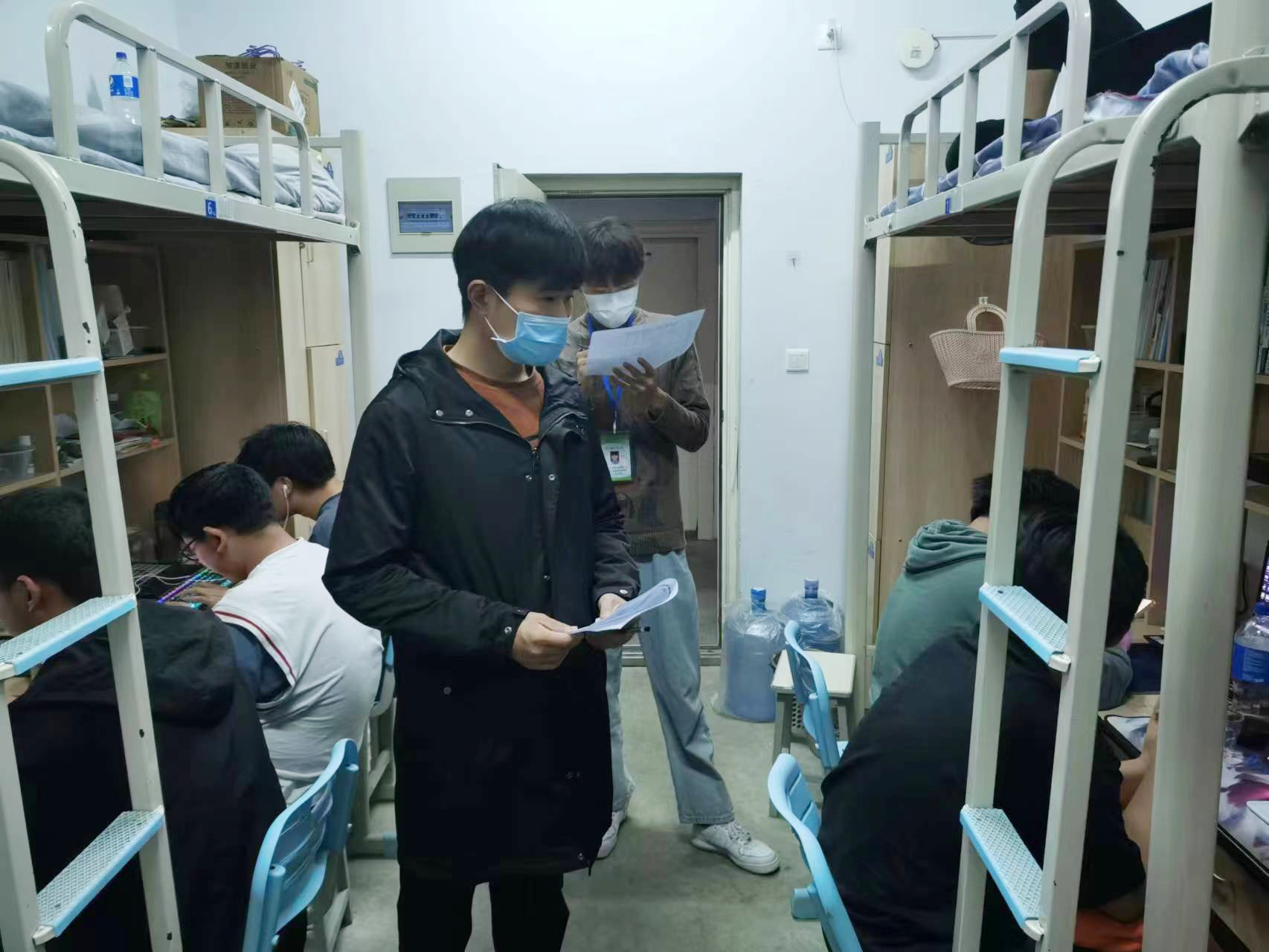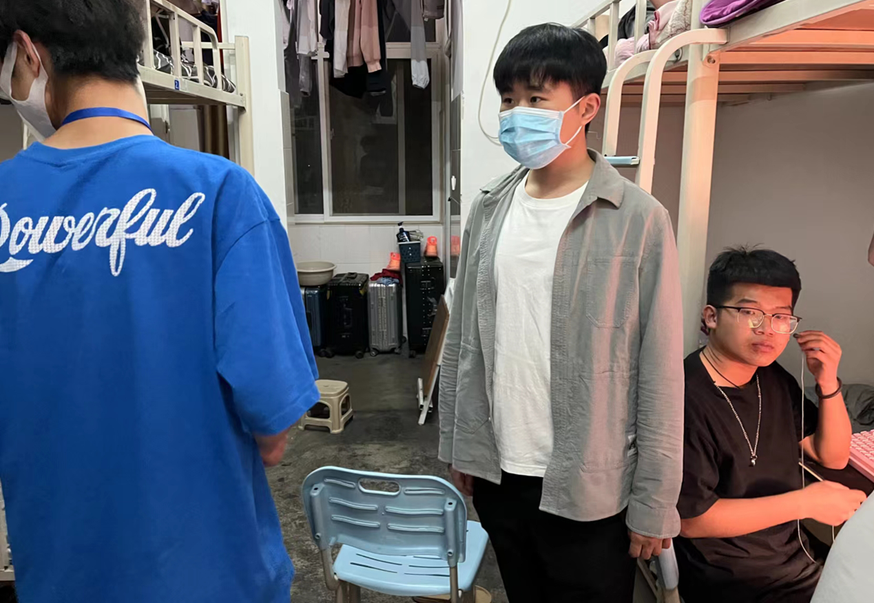 返校后,王老师立刻对信息工程学院男寝进行了逐个的巡查,了解学生情况。“大家好,我是咱们信工的值班老师王雨晨,疫情期间大家如果有生活或学习上的困难可以随时来找我,我就在咱们一楼宿舍。”这句话他每到一间宿舍就会对学生们说一遍,他相信虽然只是简短的一句话,却能给学生一颗定心丸,让他们知道时刻有老师的帮助和陪伴,这一刻他们并不孤单。
