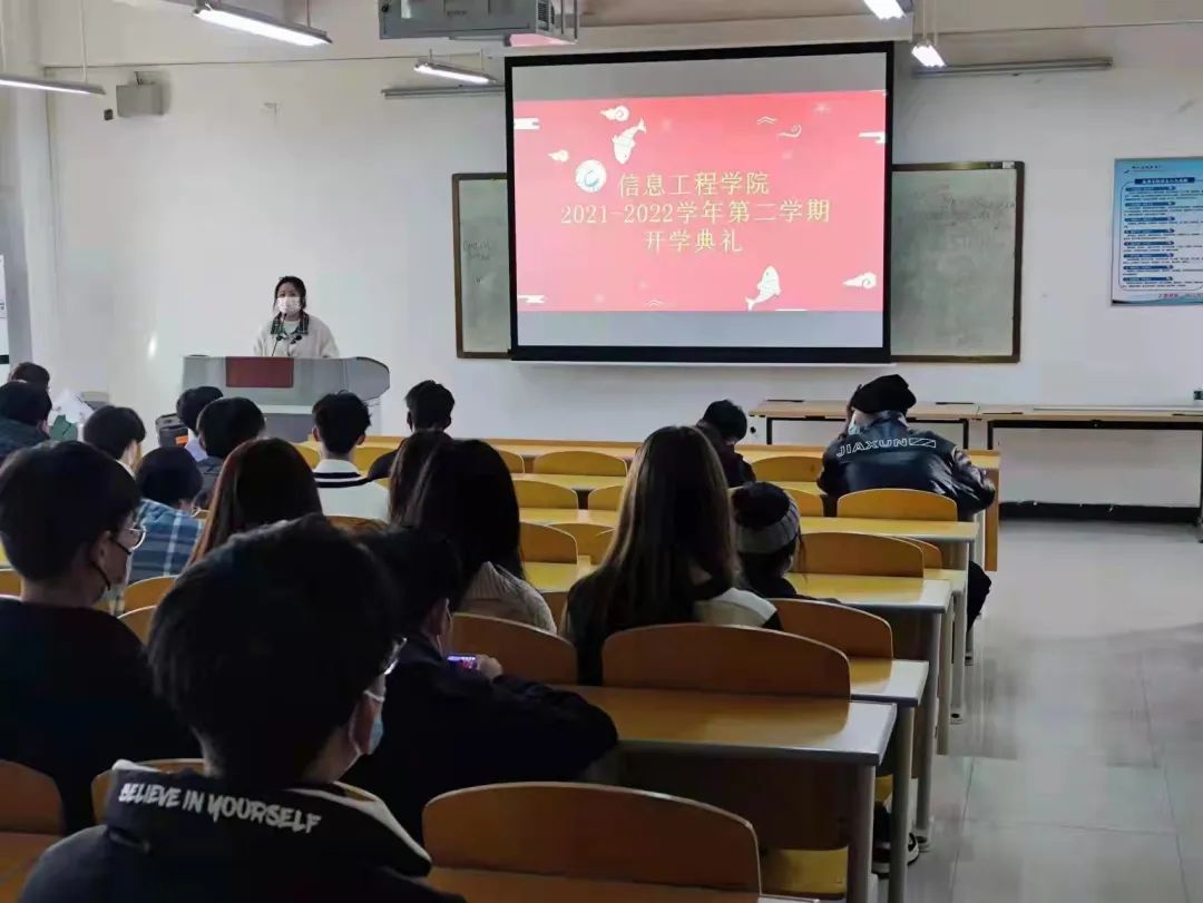 为了让同学们更快、更好地适应校园生活节奏,全身心投入到校园学习生活中去,根据pp电子2022年春季学期开学方案和防疫工作要求,信息工程学院于2月26下午组织各班召开开学典礼暨开学第一课,各班班主任主持。