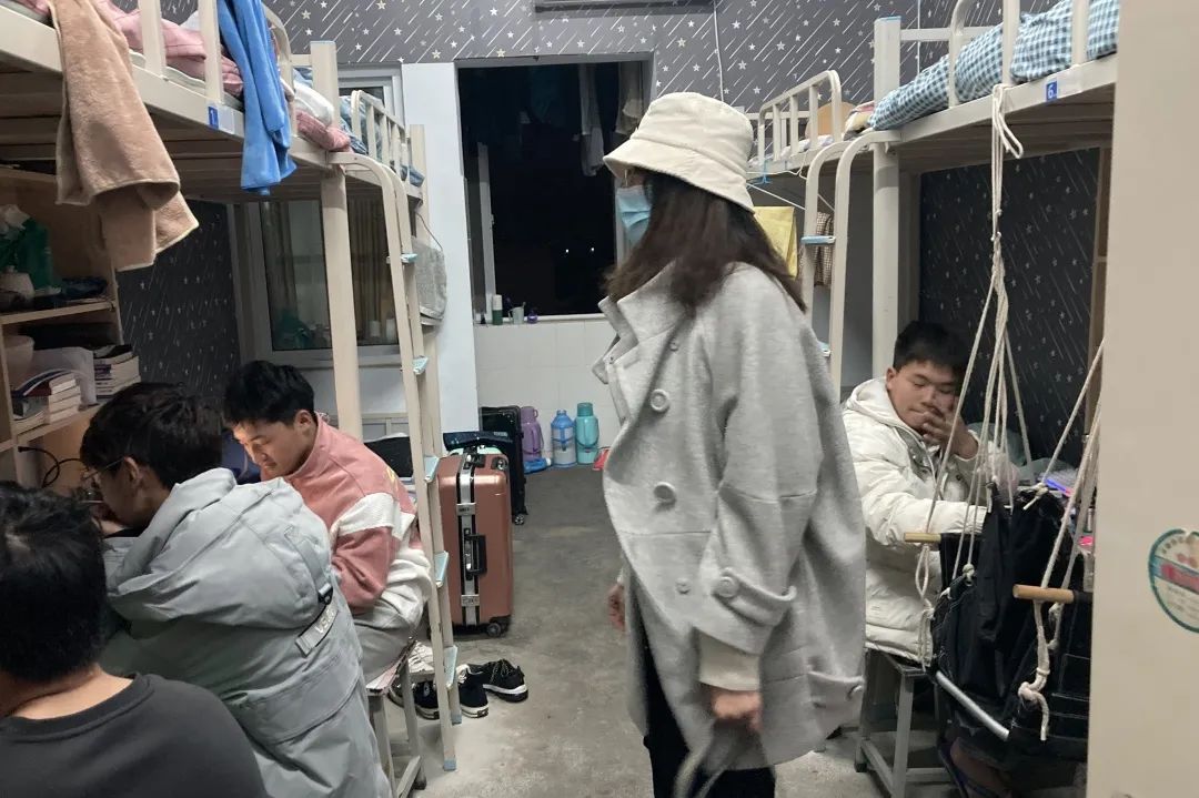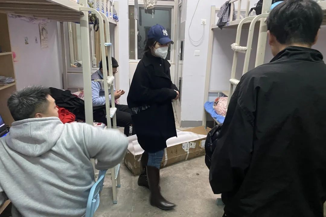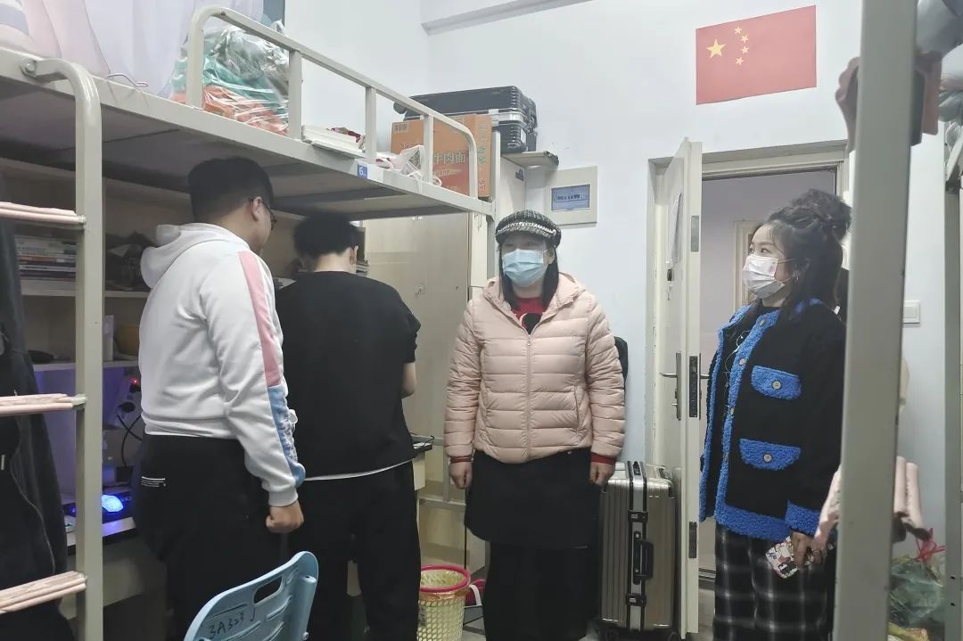 返校后,各班辅导员走进宿舍,核查学生返校情况,告知学生注意通风消杀,做好防护,上课记得佩戴口罩。