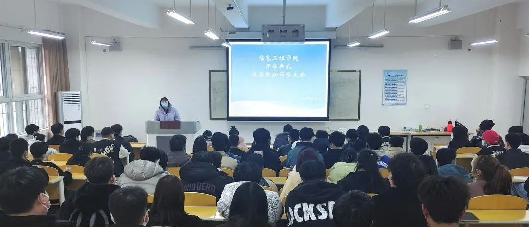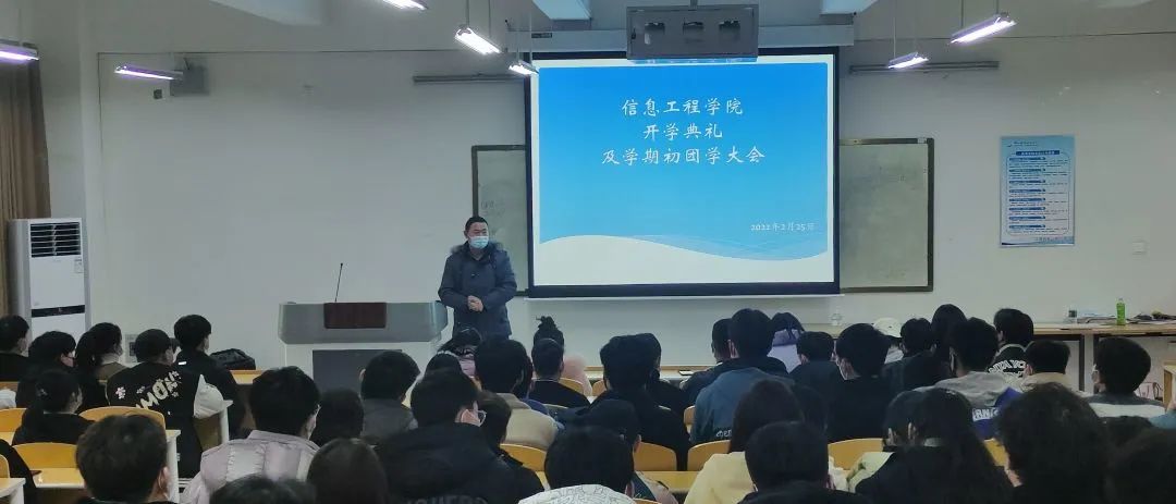 2022年2月25号下午三点五十分,信息工程学院在4b111教室召开开学典礼及学期初团学大会。出席本次会议的有党总支书记刘兆坤,团总支书记李舒,专兼职辅导员以及全体学团工作者。本次大会为让学团工作者更深入地了解学生团学组织的功能和职责,从而使各部门工作者明确自身所肩负的责任,并对接下来的新学期工作有更充分的准备。
