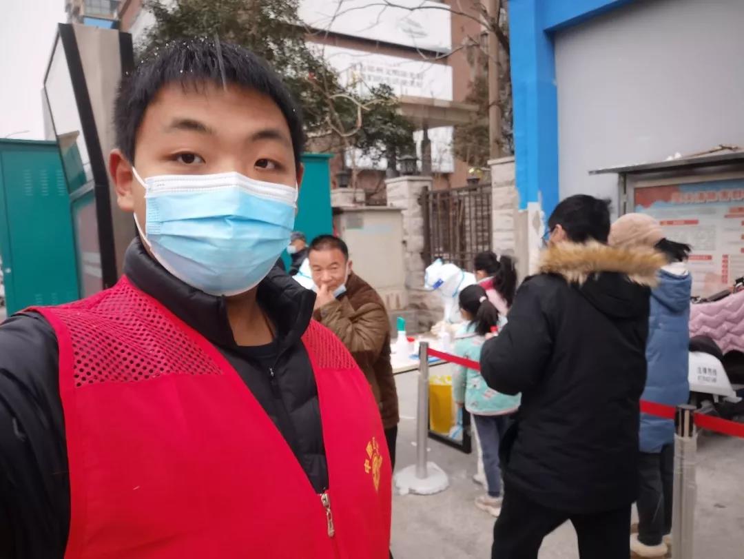 为切断传播途径,防止疫情扩散,1月4日上午,郑州市中原区汝河路街道桐淮社区紧急搭设文化宫路核酸检测点及司法所核酸检测点,并且紧急召集志愿者打响“家门口”的疫情阻击战。信息工程学院20级计算机网络技术1班的李鑫育报名志愿者,立刻奔赴汝河路街道支援核酸检测。