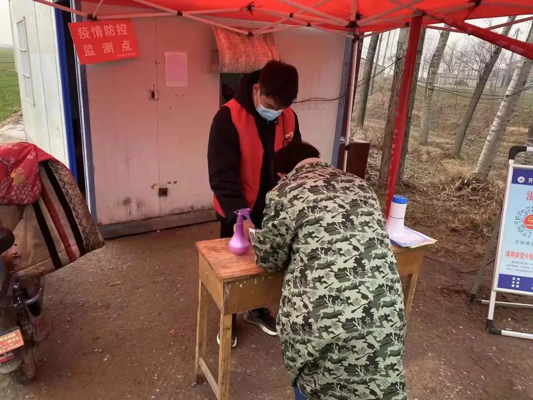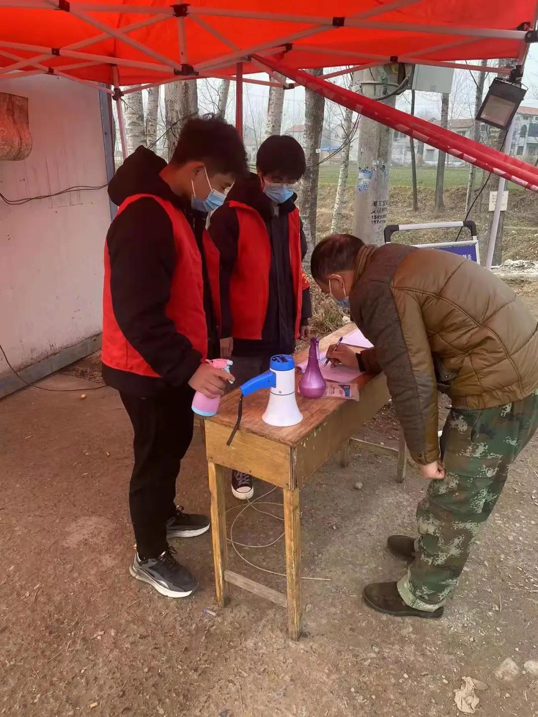 路口哨卡,疫情防控监测点,都穿梭着他的身影。1月7日他协同其他志愿者井然有条地排查,穿着小马甲在疫情防控监测站站岗,为来往行人车辆进行登记,门口哨卡劝退工作,消毒工作等,服务好群众。同时,对每一名进出人员进行体温测量登记,以及对来往车辆进行车牌登记和消毒,确保每一个进入村里的人员车辆安全不带有病菌。