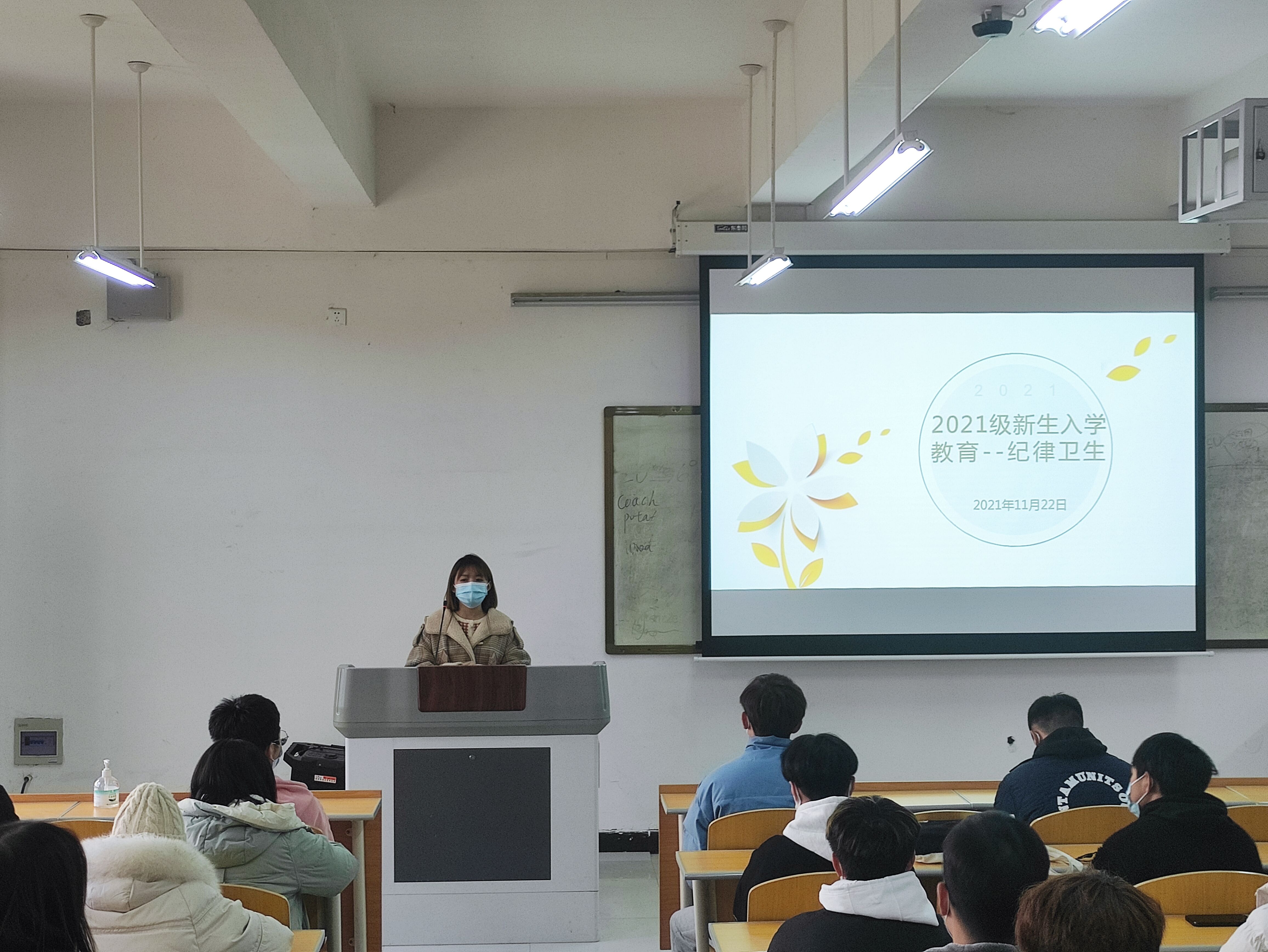 我院于2021年11月12日在4b111开展新生入学教育活动—纪律卫生主题,以此增强新生纪律卫生意识,树立良好观念。主讲是辅导员郑方园,21级各班班委参加会议。