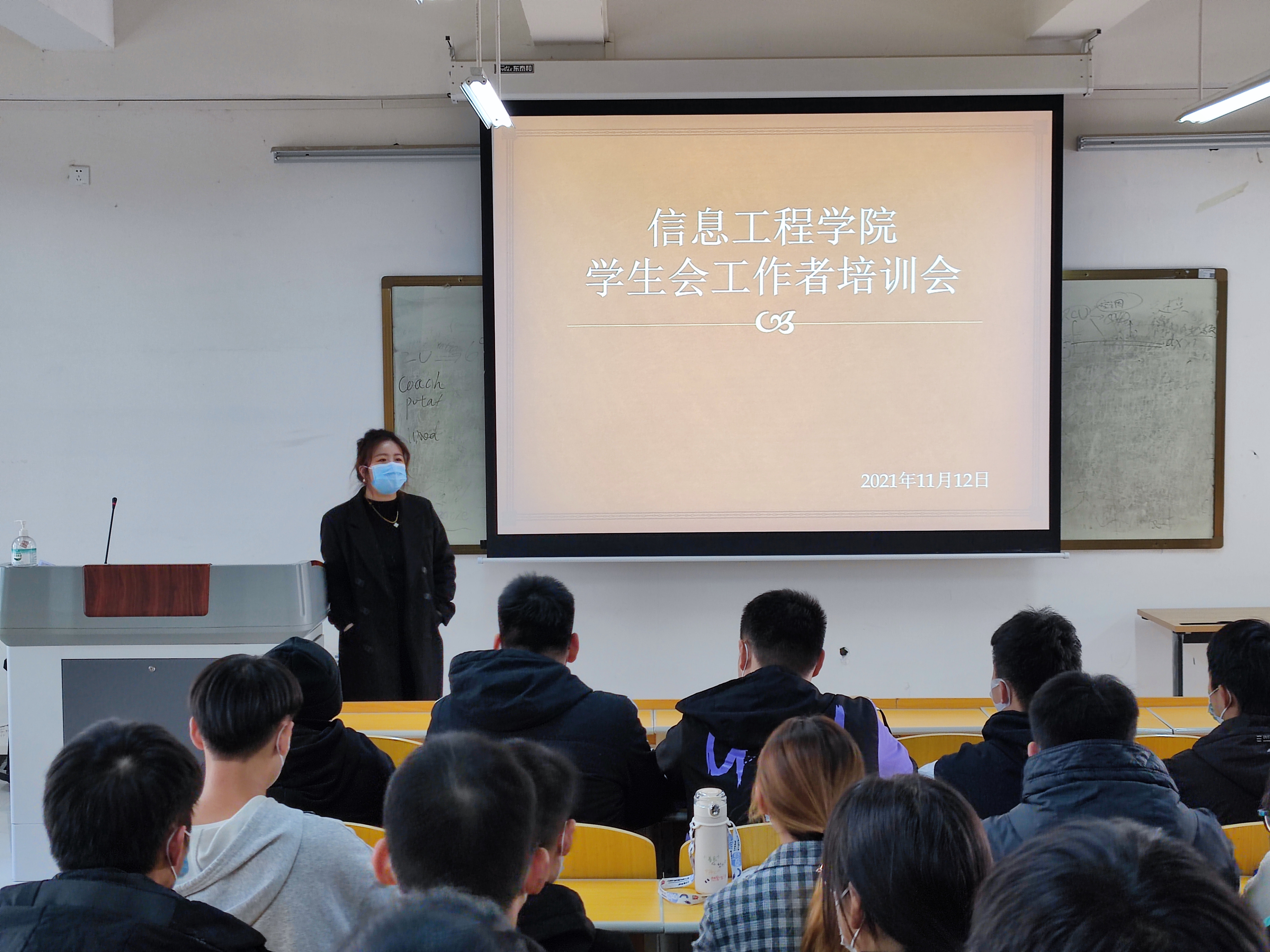 为了提高学团队伍的工作能力,进一步发挥先锋模范带头作用,我院于2021年11月12日中午12点10分在4b111展开学生工作者培训会,会议有辅导员付佳主持,20级、21级学生会主要成员参加。