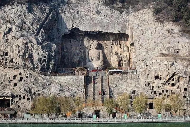龙门石窟始开凿于北魏孝文帝迁都洛阳(公元493年)前后,后来,历经东西魏、北齐、北周,到隋唐至宋等朝代又连续大规模营造达400余年之久。密布于伊水东西两山的峭壁上,南北长达1公里,共有97000余尊佛像,最大的佛像高达17.14米,最小的仅有2厘米。