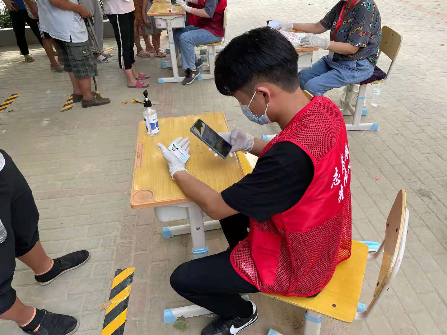 配合村委会干部和办事处干部以及医护人员进行核酸检测工作,帮助村民扫码填写个人信息以及向检测试管内录入村民信息,守好村口防疫卡点,让回家及过往车辆和人群进行扫码登记,绿码放行,对黄码以及红码人群及时上报和劝返,对村内隔离人员运送生活用品和饭菜。