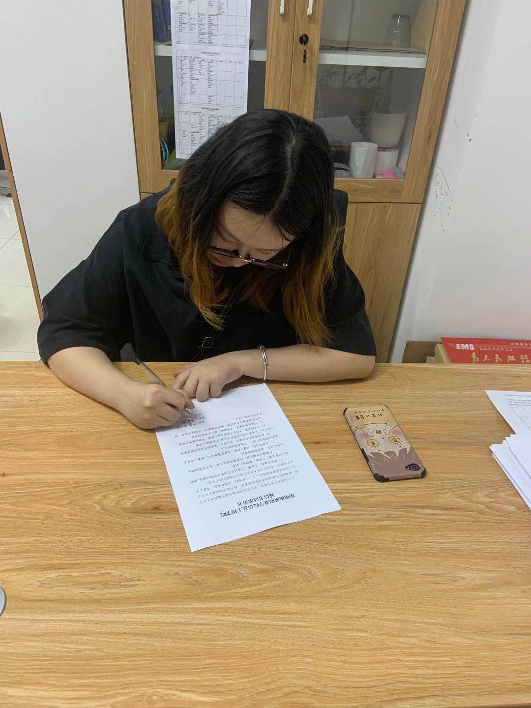 通过努力,她个人综合考评始终在班级前三名,曾连续两学期取得班级第一名的好成绩。自大二下学期起,计划准备专升本考试,在考试中她牢固树立“诚信考试”的意识,决心通过自己努力通过专升本考试。