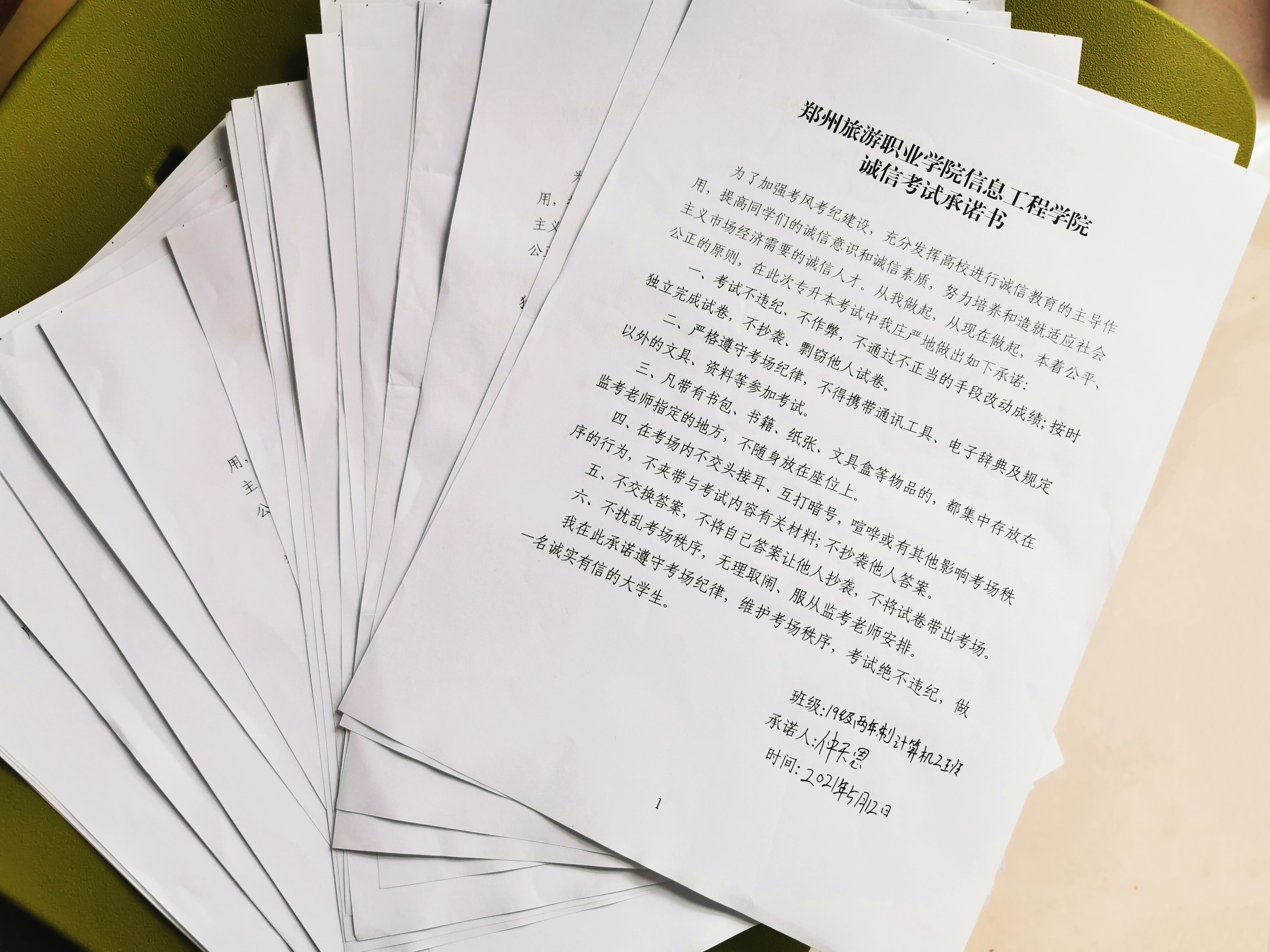 二、利用专升本考试这一时机,开展学生考试诚信教育专项活动,组织毕业班专升本学生签订诚信布试承诺书,增强学生诚信考试意识,激发学生学习动力,引导学生树立“说诚信话,办诚信事,做诚信人”的诚信观念,唤醒学生自我教育和自我完善意识,自觉加强诚信建设,养成诚信待人,诚信处事,诚信学习,诚信立身的良好习惯,自觉践行社会主义核心价值,共建和谐校园。