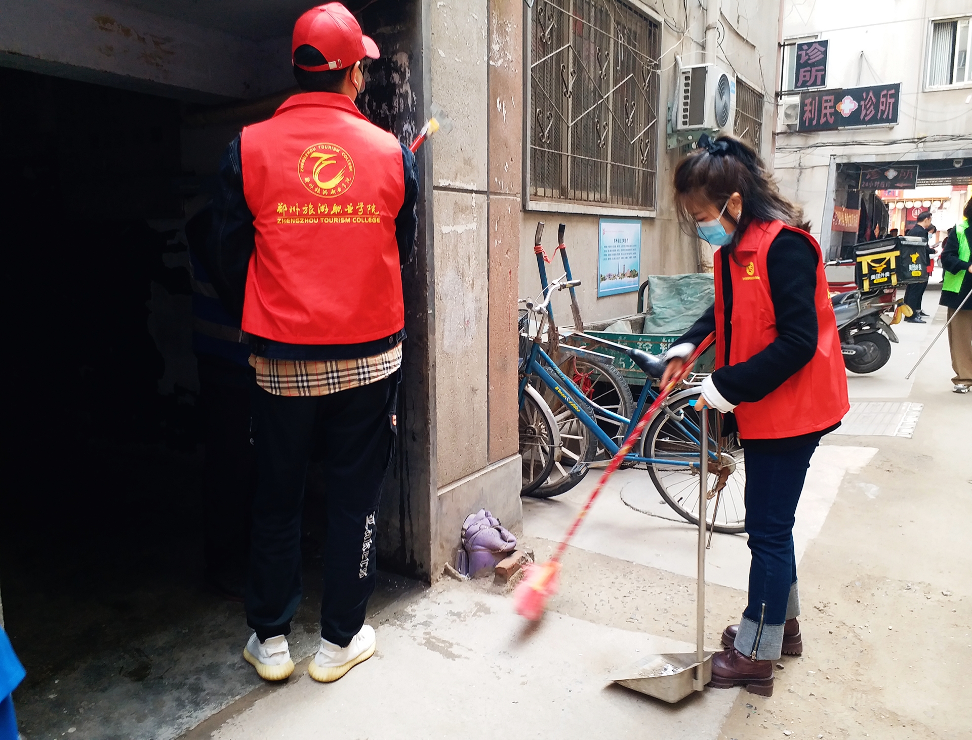 本次活动主题为“学雷锋精神,争当文明使者”,我院师生走进社区,将宣传志愿服务与学雷锋活动结合起来,大力弘扬和传承雷锋精神。他们分发并讲解我院师生制作的学雷锋精神与垃圾分类宣传页、帮助打扫社区楼道卫生、除粘贴小广告、走进社区人家为居民发放口罩、消毒液、垃圾袋、抽纸并宣传防疫知识,摆放共享单车及违章乱停电动车等。师生志愿者们不怕苦、不怕累,传承雷锋精神,争当文明使者。