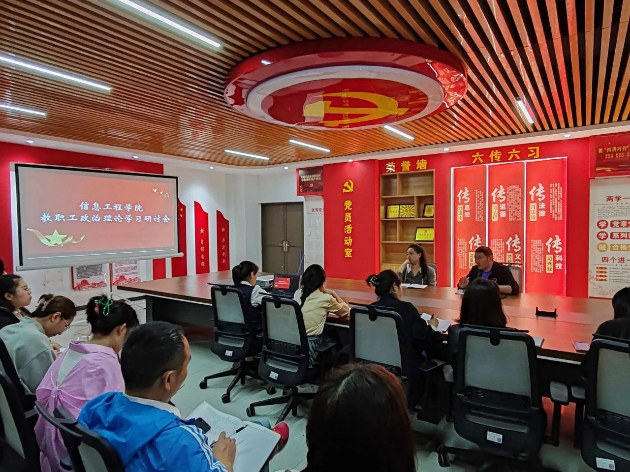 为深入学习贯彻习近平新时代中国特色社会主义思想和党的二十大精神,坚持做好理论武装工作,扎实推进信息工程学院教职工政治理论学习,我院于9月27日在4A103召开了2023年下半年教职工政治理论学习研讨会。会议由我院党总支书记刘兆坤主持,信息工程学院全体教职工参加。