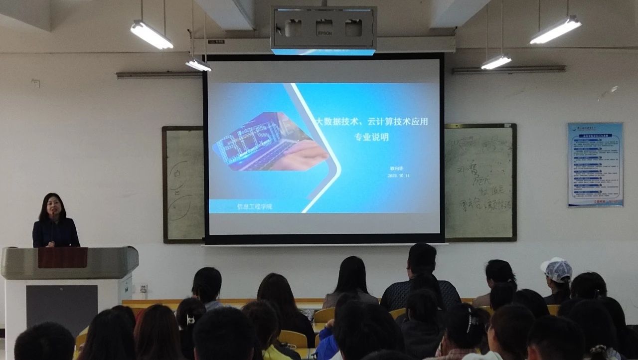 为帮助新生全面了解自身专业,为他们的未来发展提供更好的指导与支持,帮助他们更好地完成专业知识的学习及职业规划。2023年10月11日下午,信息工程学院大数据教研室于4b111开展了一场关于大数据技术和云计算技术应用专业的新生专业说明会。本次说明会由耿向华老师主讲,大数据教研室的王珂、谭丹丹、郭怡静、齐梦林等老师和全体2023级大数据技术、云计算技术应用专业的新生参加了该说明会