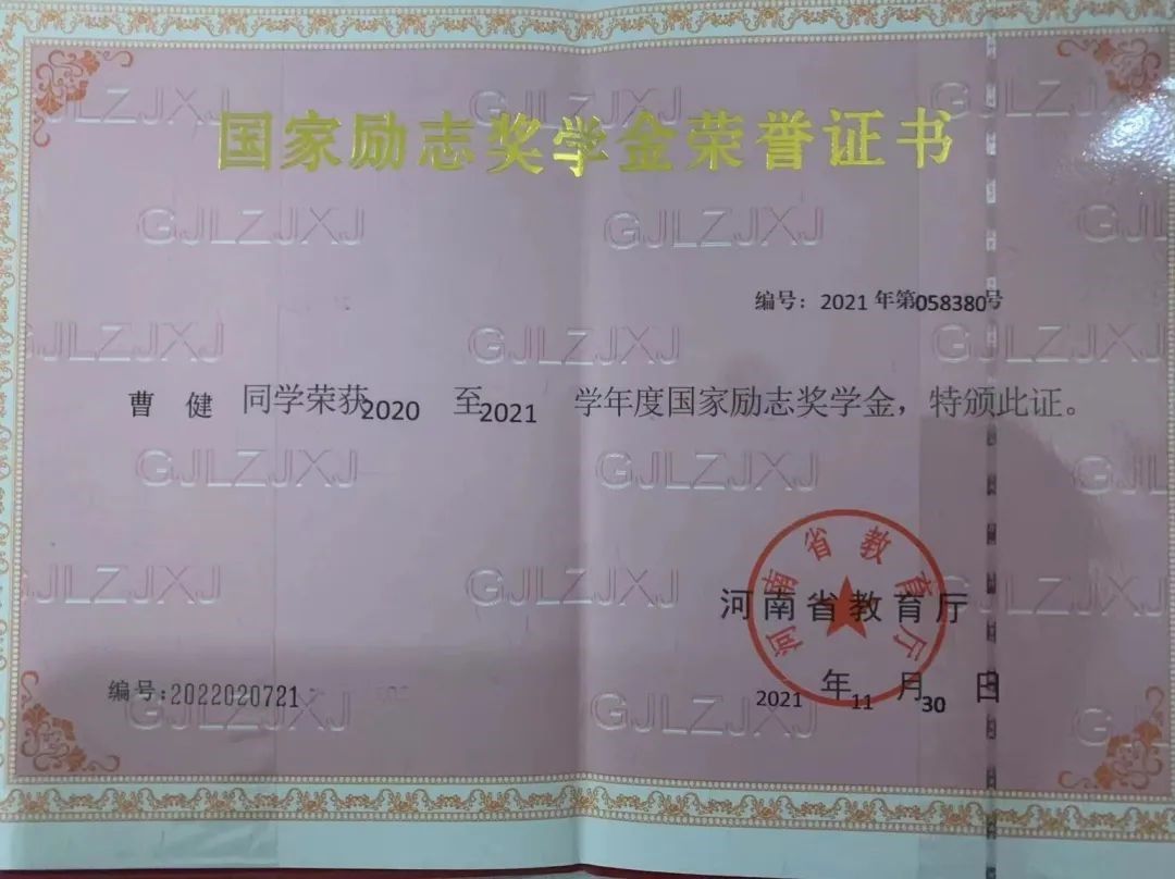 在校期间曾获国家励志奖学金、河南省优秀毕业生、郑州市优秀学生干部、疫情防控志愿服务先进个人、优秀团干、优秀团员、优秀青年志愿者等荣誉。