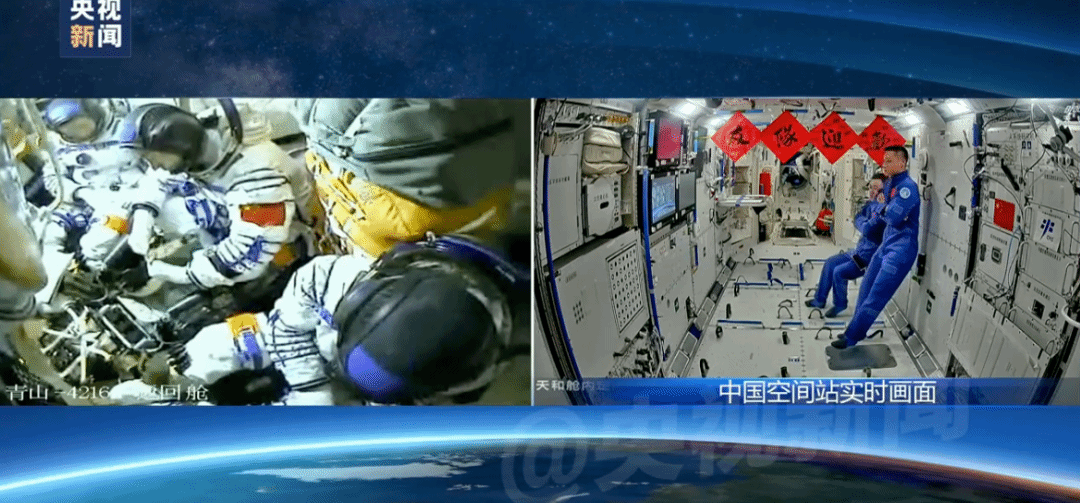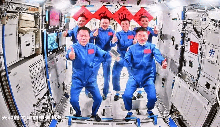 北京时间4月26日05时04分,在轨执行任务的神舟十七号航天员乘组顺利打开“家门”,欢迎远道而来的神舟十八号航天员乘组入驻“天宫”。随后,两个航天员乘组拍下“全家福”,共同向牵挂他们的全国人民报平安。
